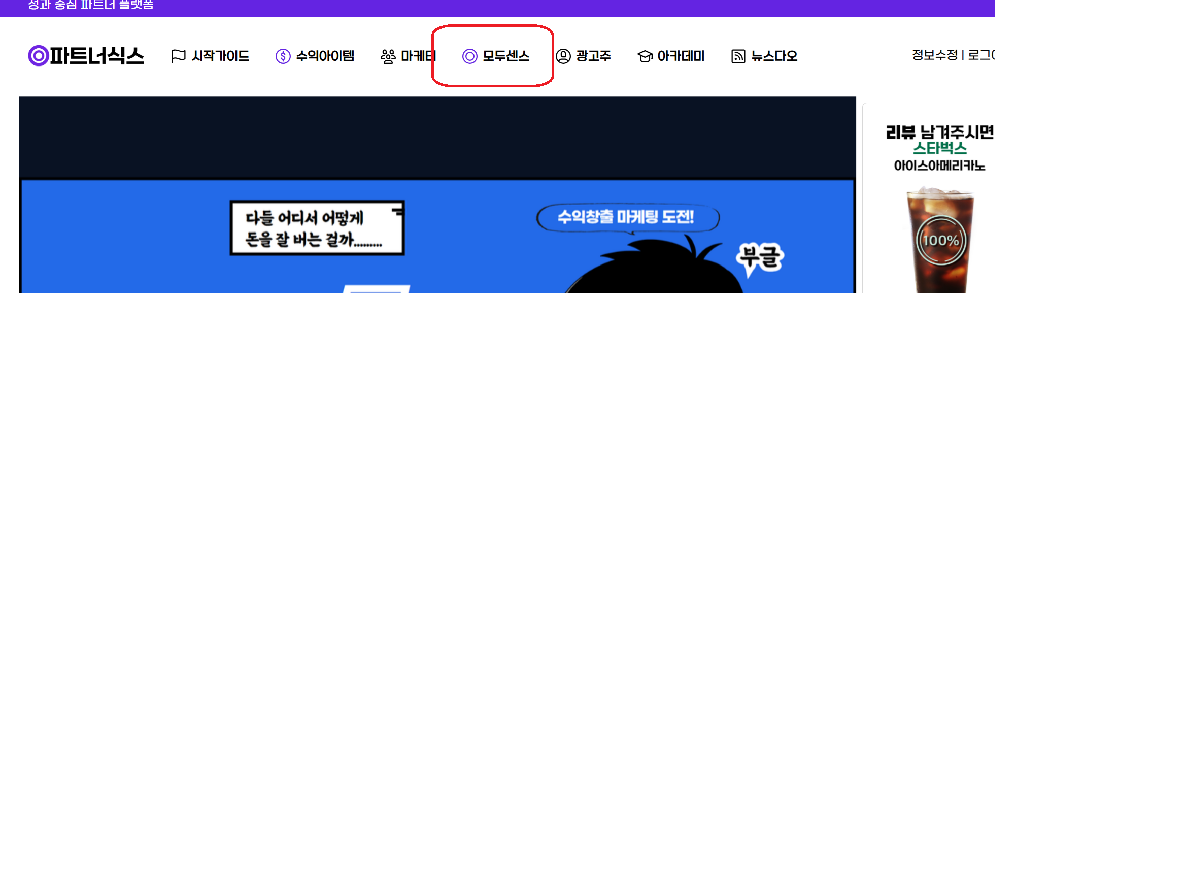 그럼 로그인하시고 화면 중간에 모두센스를 클릭하세요.