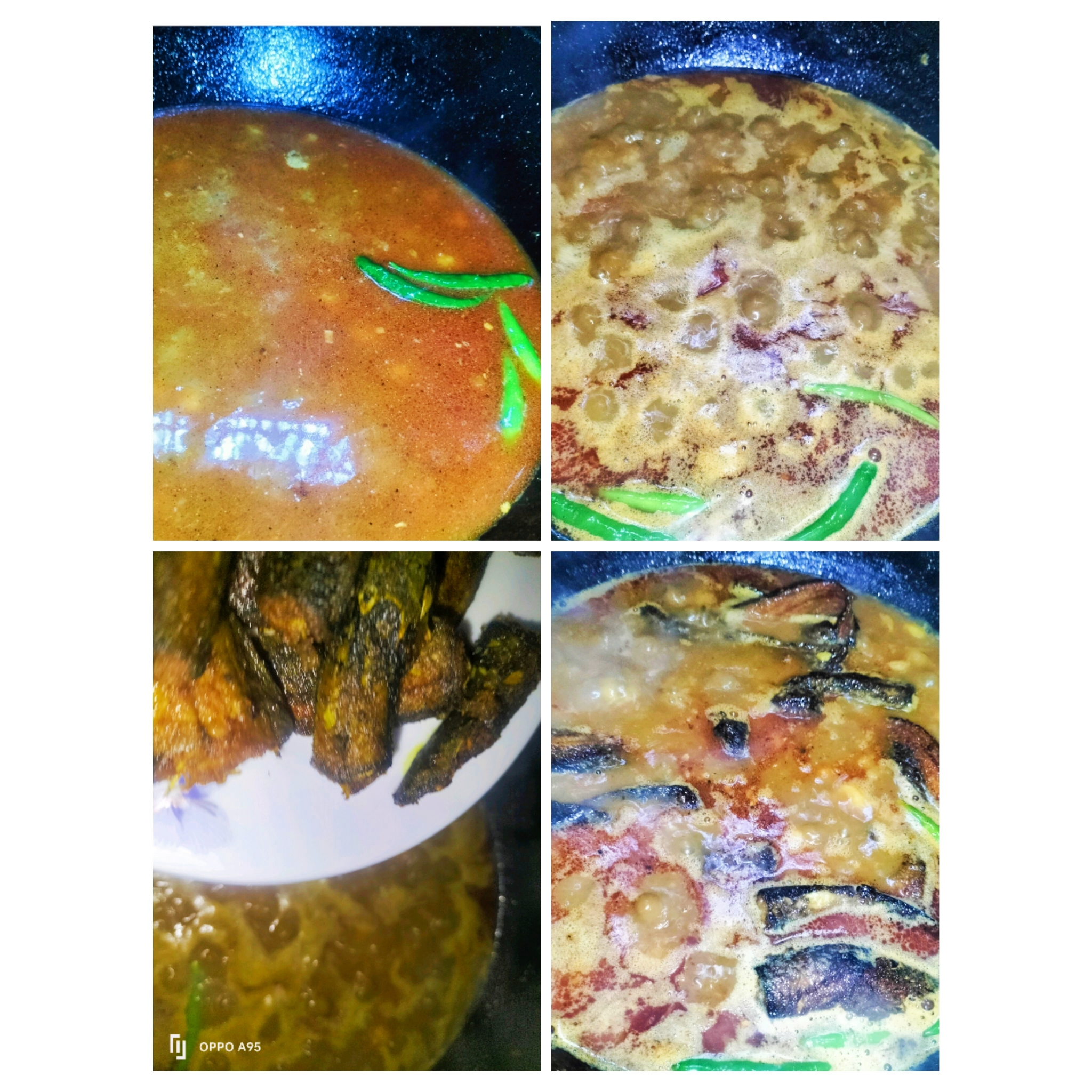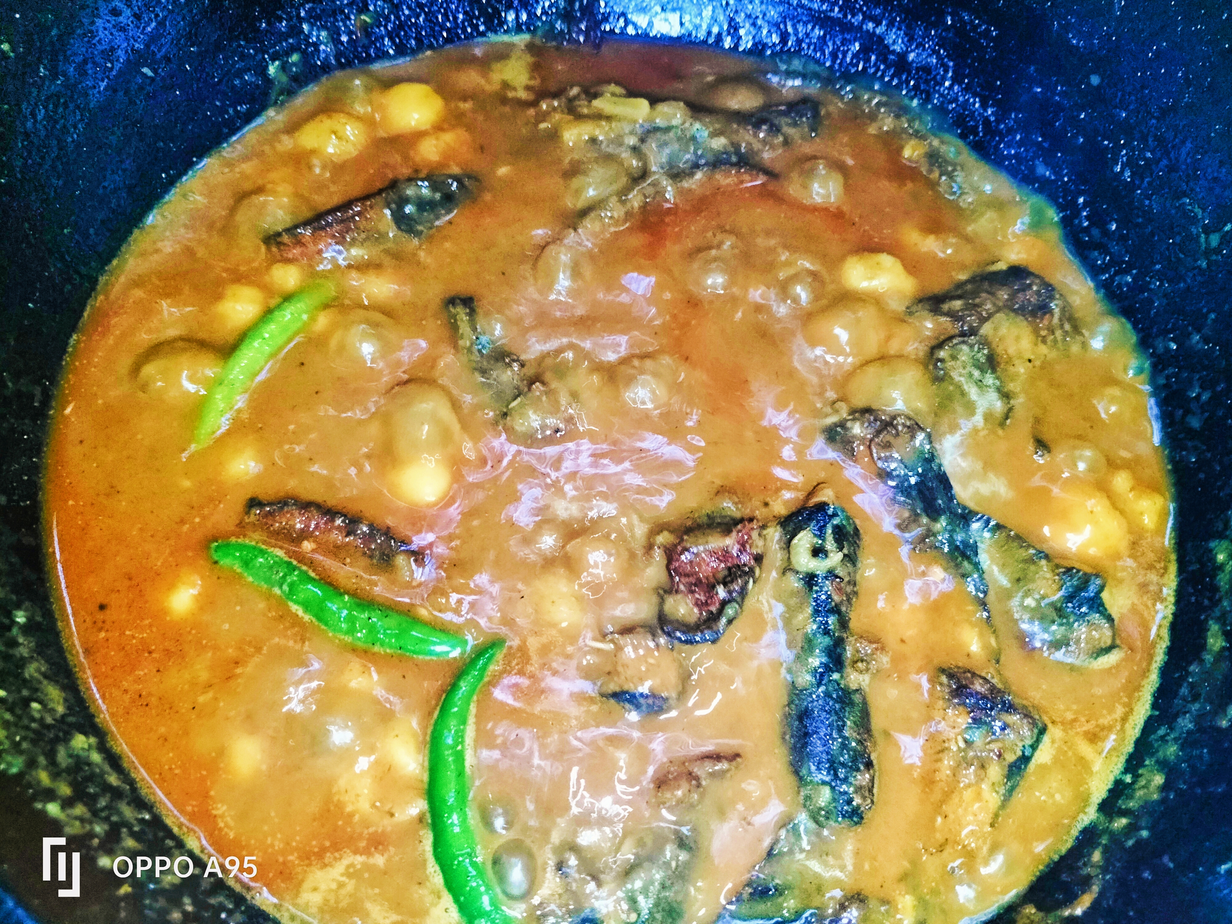 এখন জল দিয়েছি, কাঁচা মরিচ দিয়েছি ও কিছু সময় এবং আগে থেকে ভেঁজে রাখা মাছ গুলো দিয়েছি।