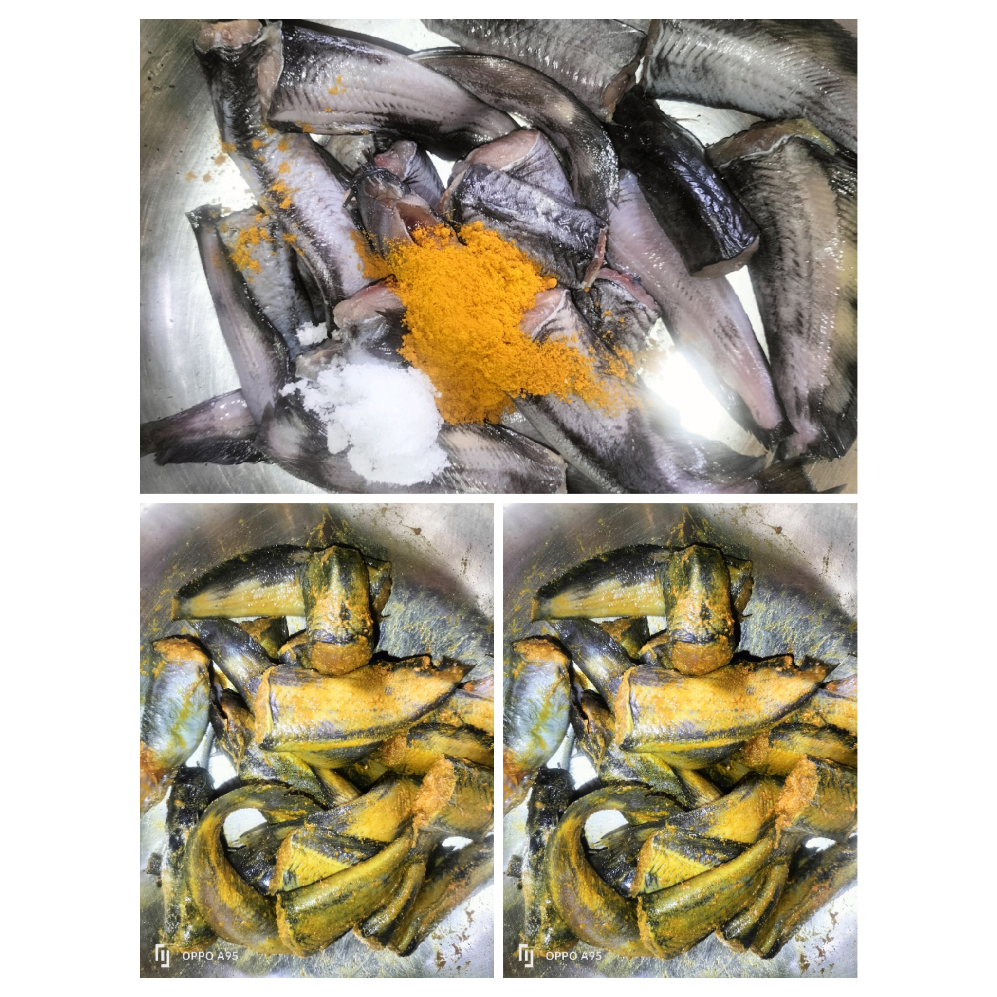 এখন শিং মাছ গুলোতে লবন, হলুদ দিয়েছি ও মেখে নিয়েছি।