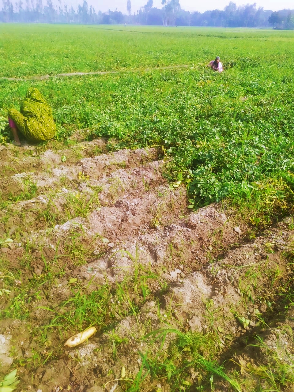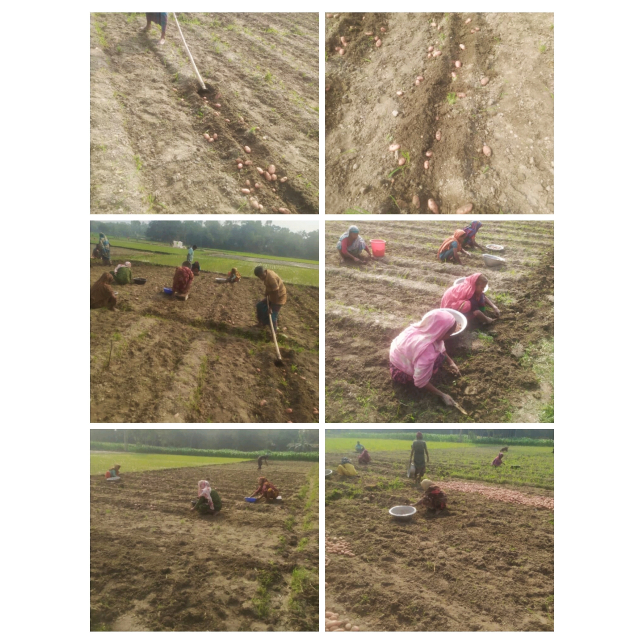 এরপর কয়েকদিন পর আলু তোলা শুরু করে হয়েছে।আলু তোলার জন্য প্রথমে গ্রাম বাংলার ঐতিহ্যবাহী কৃষি কাজের জন্য যে লাঙ্গল থাকে সেই লাঙ্গল দিয়ে টেনে টেনে আলু বের করে নেয়া হয়েছে। লাঙ্গল দিয়ে টানার ফলে আলু গুলো বের হয়ে এসেছে আর আলু তুলতে সহজ হয়েছে।