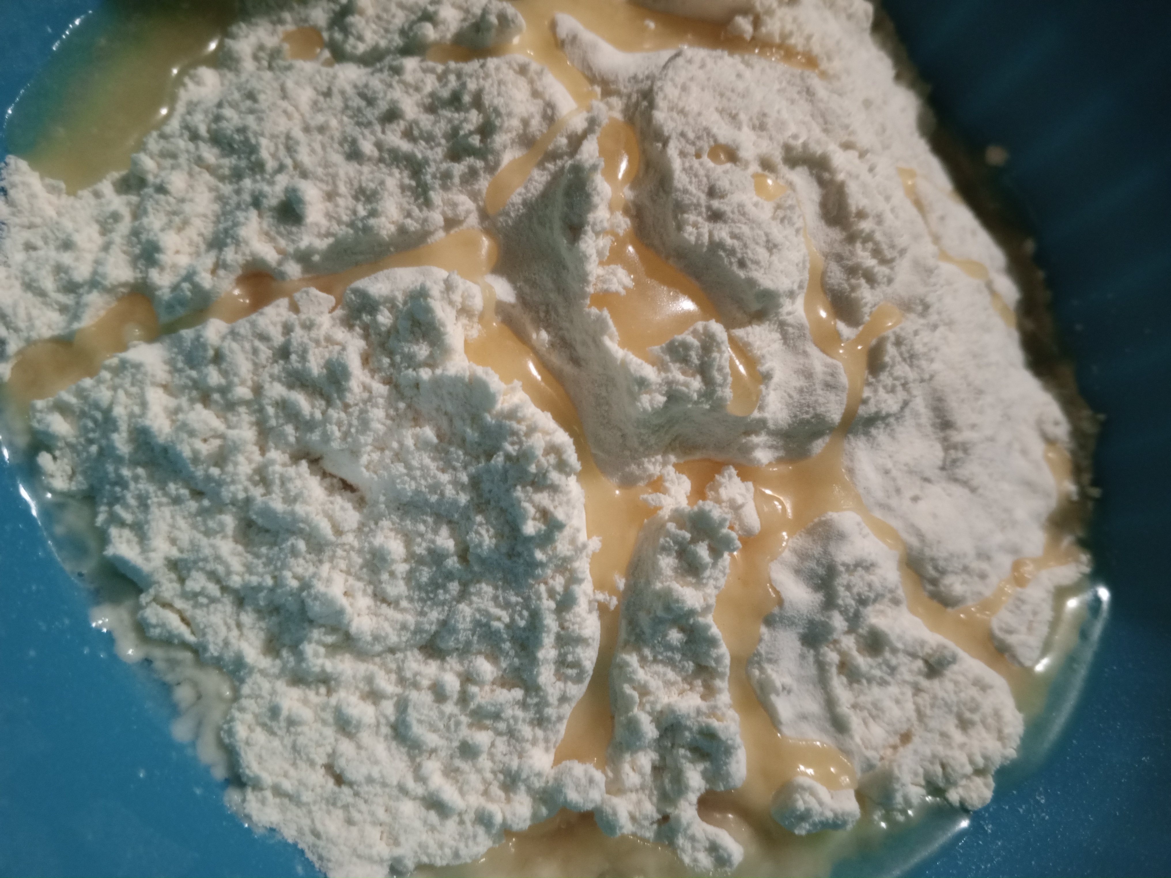 Teniendo listo el relleno, me dediqué a hacer la masa, en la cual agregué en un bowl la harina, el aceite y el agua y amasé hasta formar una masa que no se pegara a mis dedos.