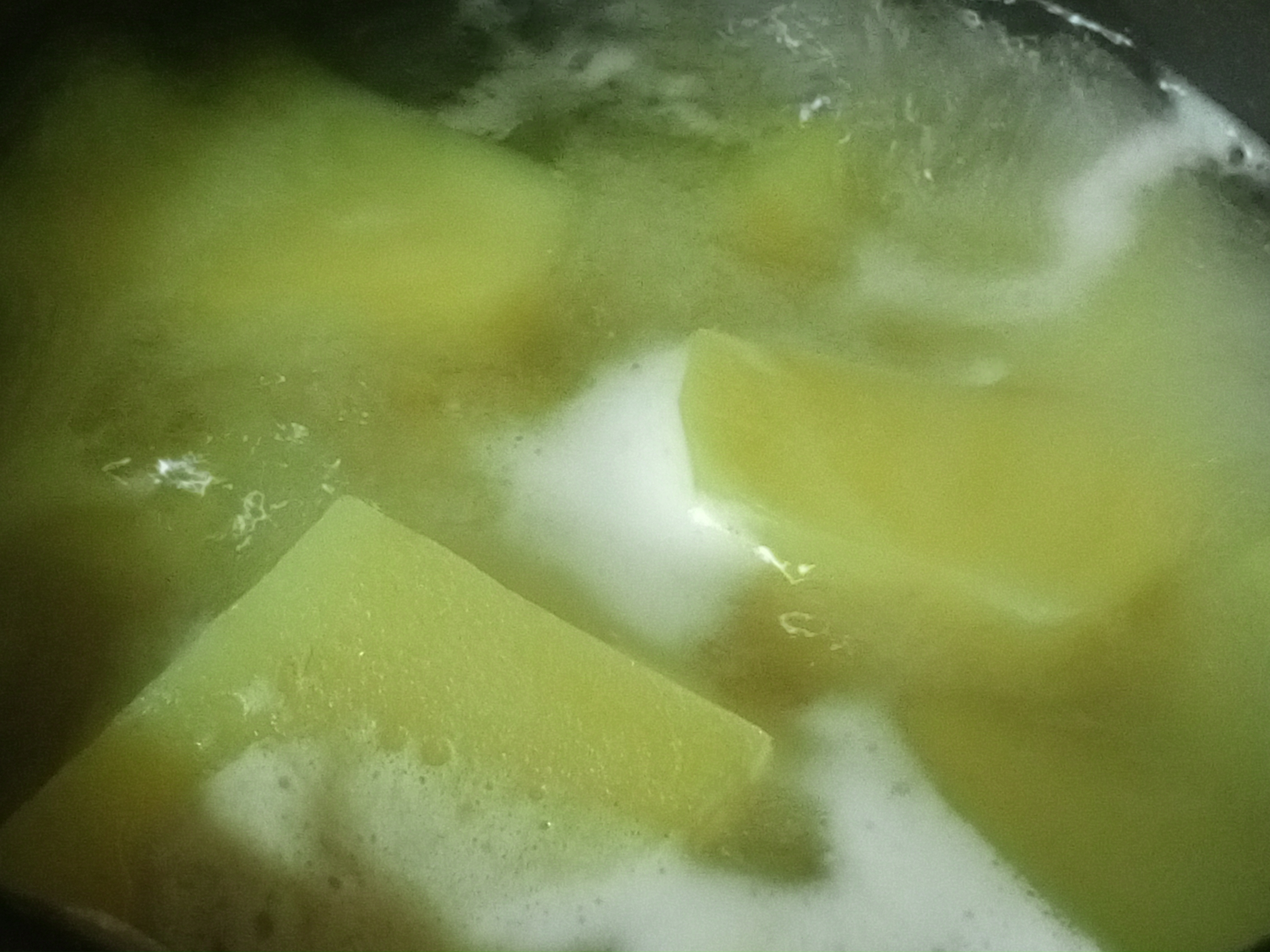 Para esta receta, lo primero que realicé fue seleccionar todos los ingredientes que utilizaría, entre ellos, tres papas grandes de pelé y corte para cocinar hasta ablandar.