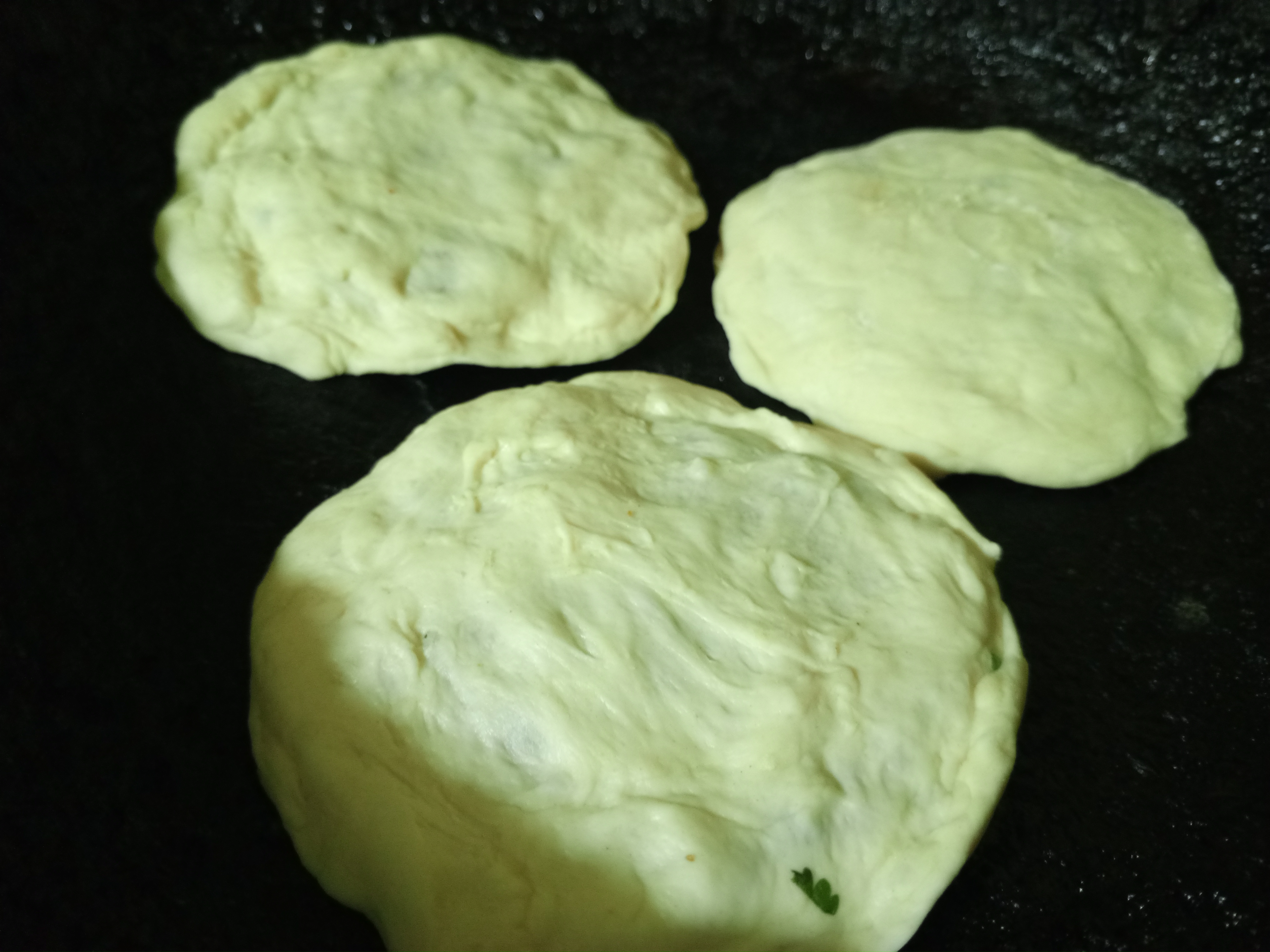 Aquí es cuando comienza la magia y comencé a crear mi paratha, separando la masa en pequeñas bolitas que estiré, rellené y cerré con otra capa de masa.