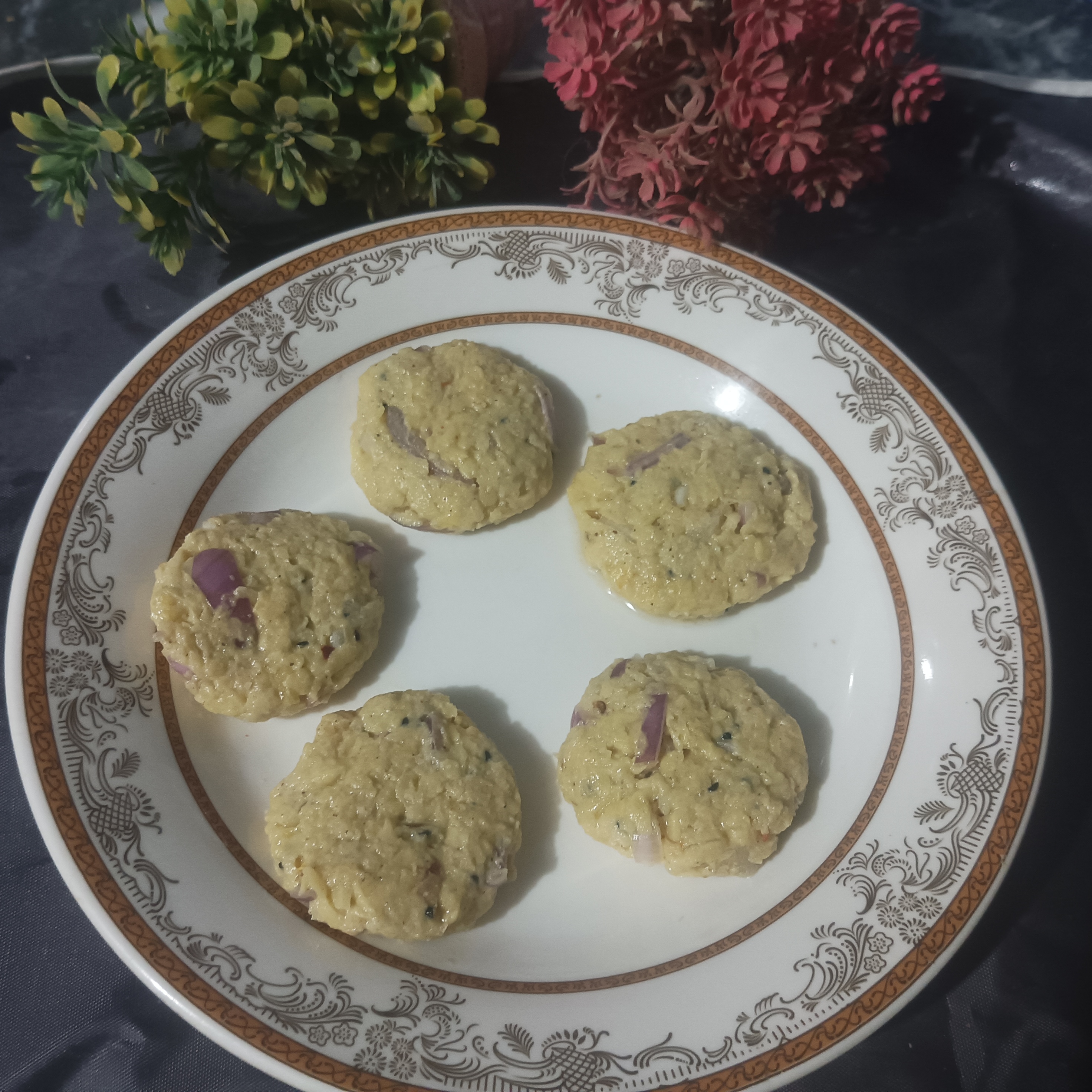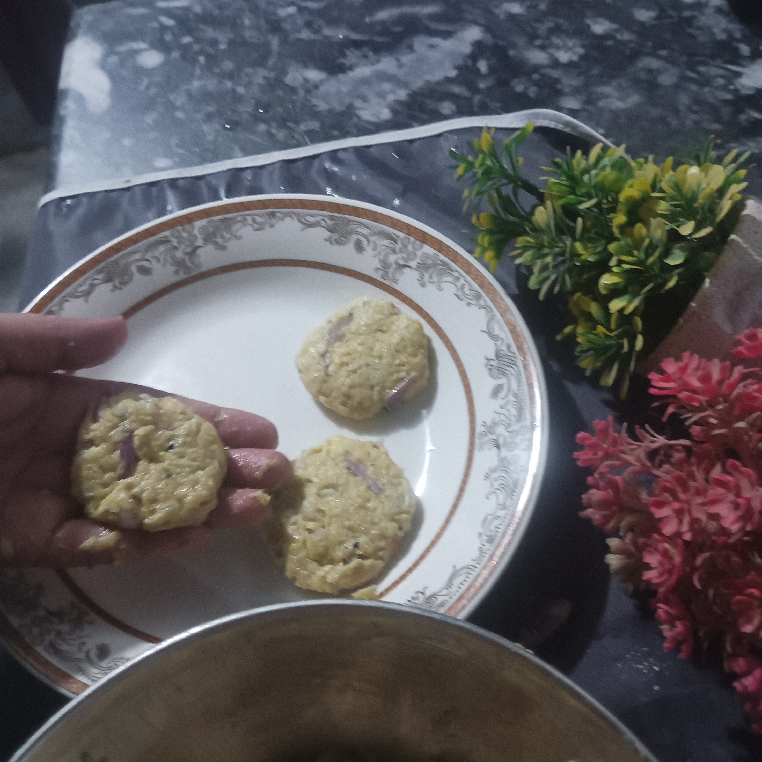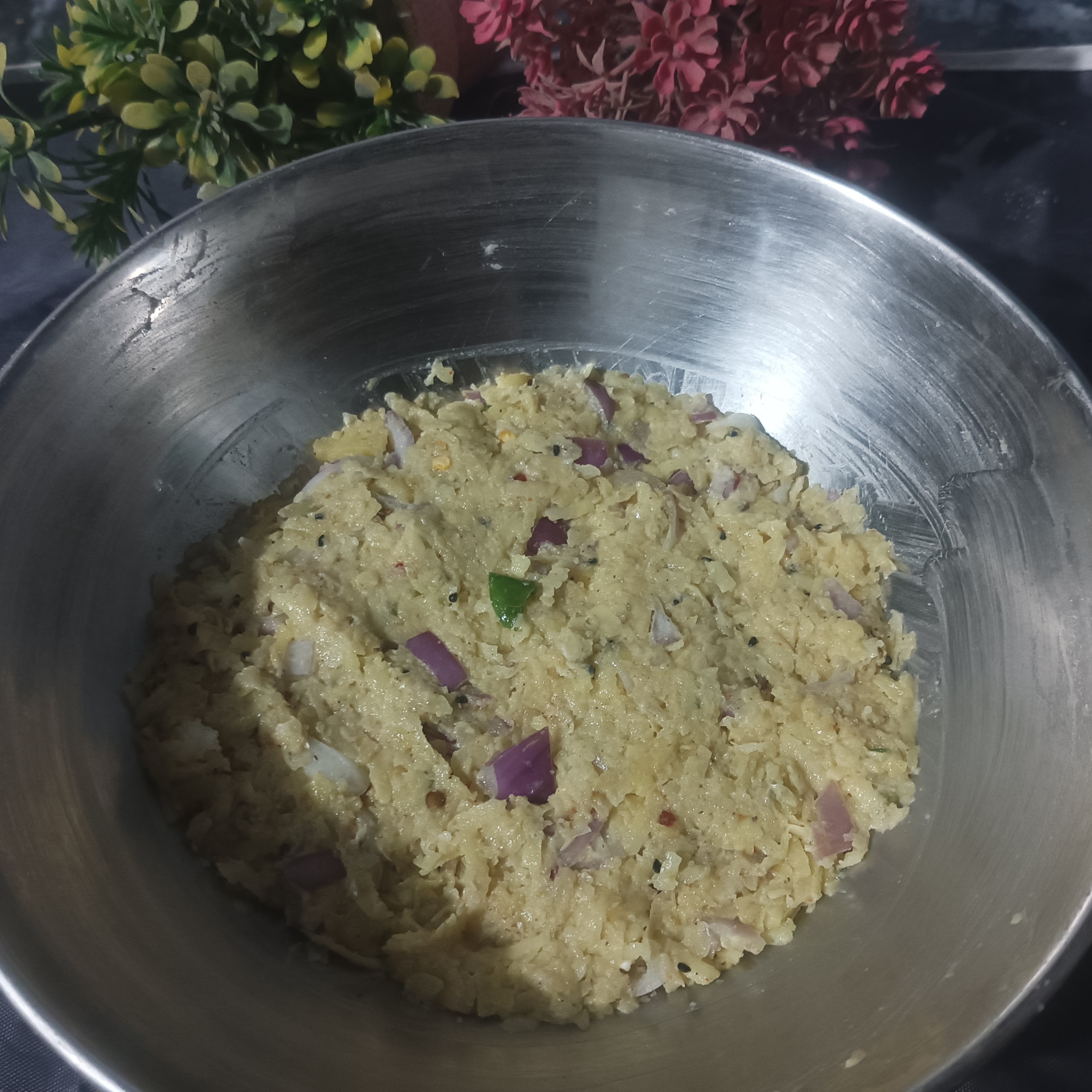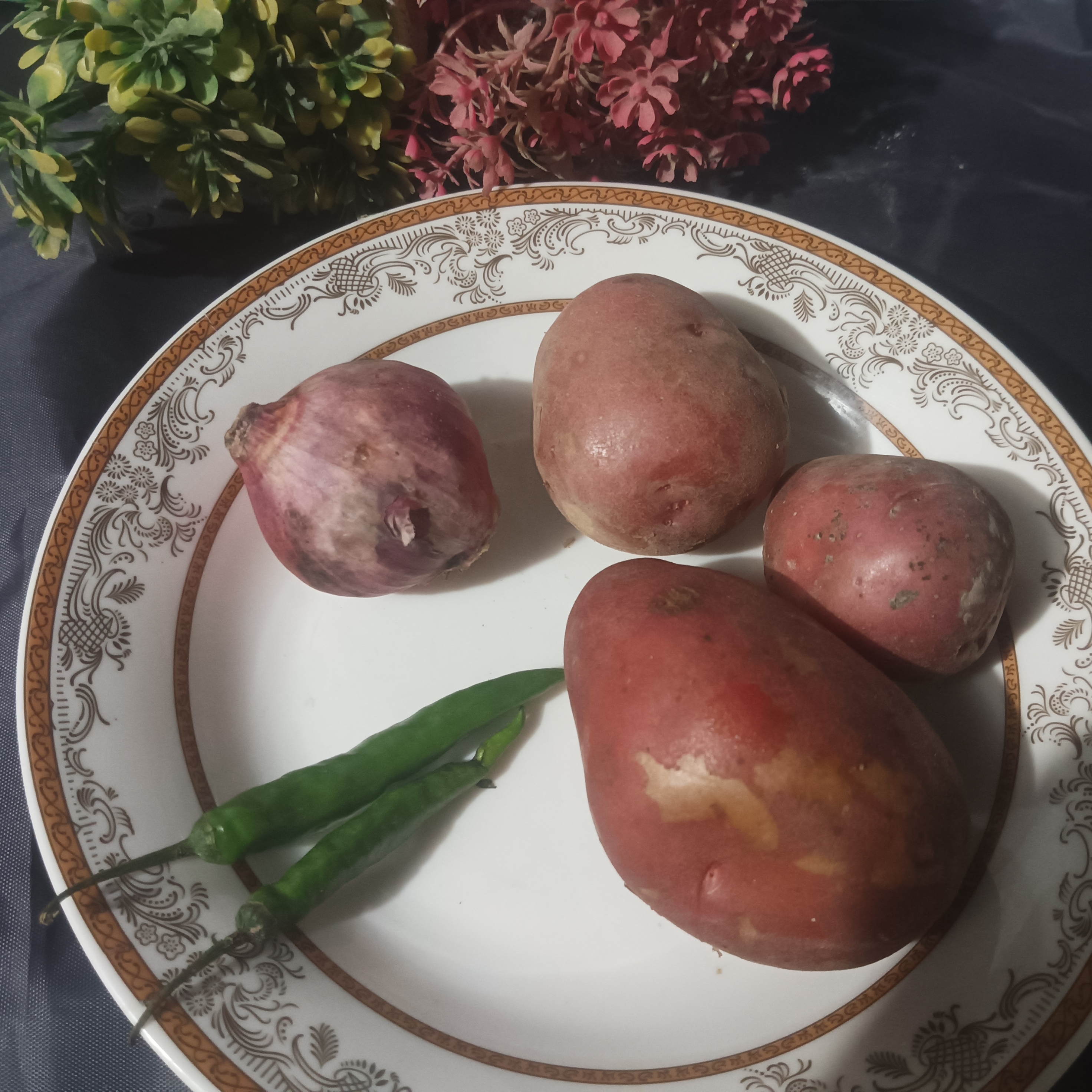 Main ingredients are ³ Potato's medium size , ¹ small onion and ² green chillies.
