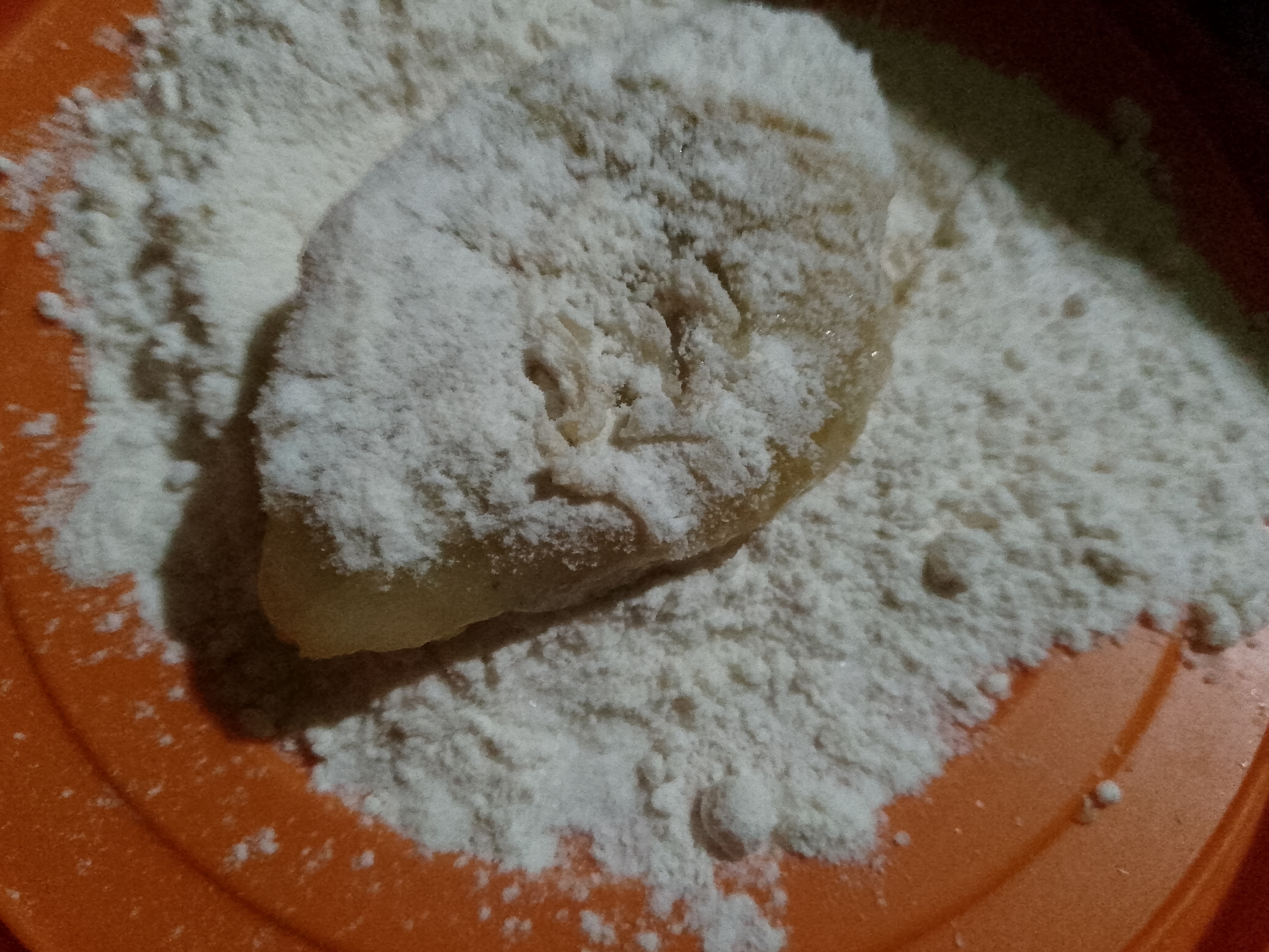 Posteriormente pasé las croquetas de patatas por la harina, para que quedaran crujientes al momento de freírlas.