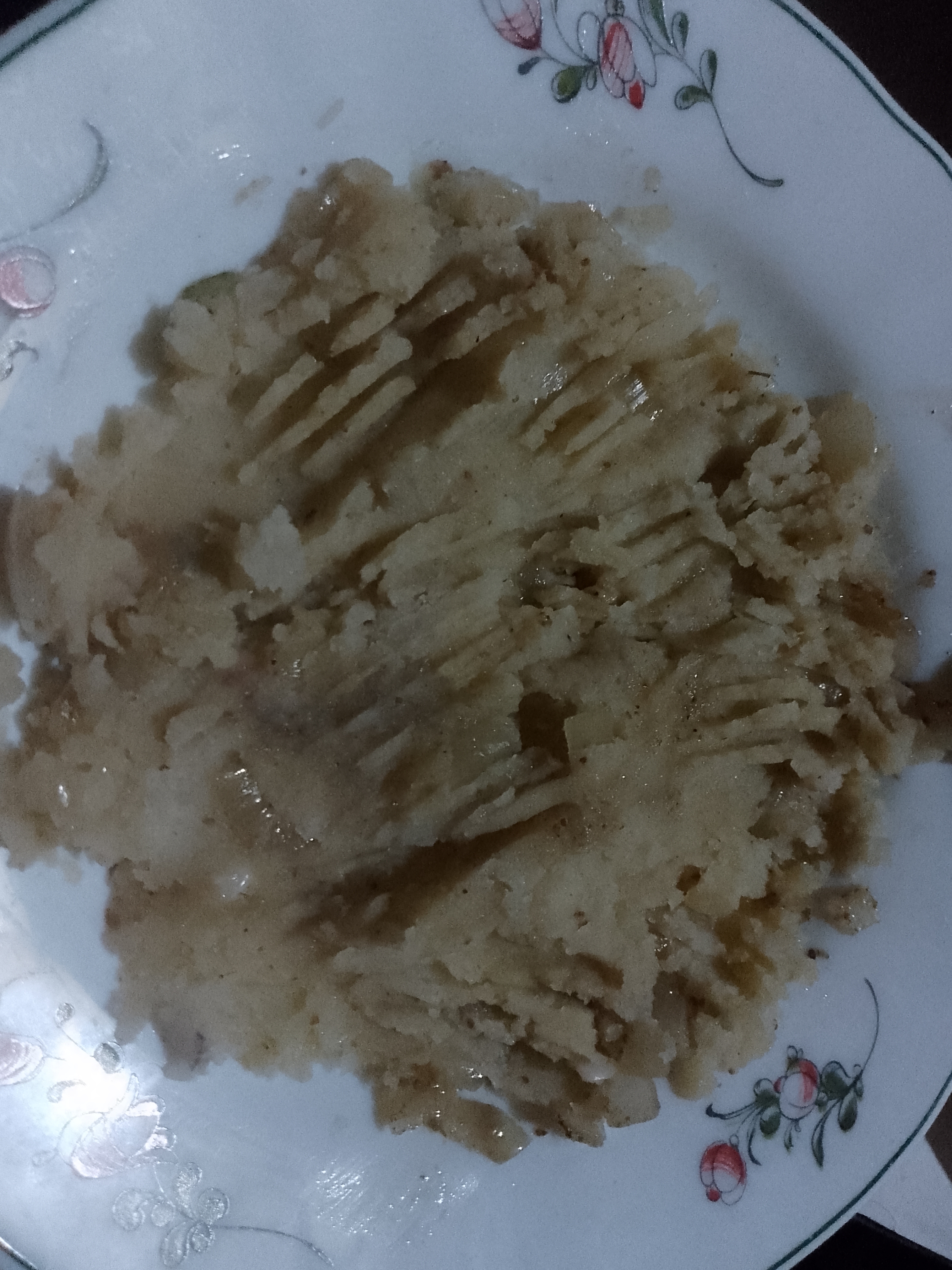 Lo siguiente fue triturar las patatas ya cocidas hasta hacer un puré, y agregar la mezcla de fritura cebollas a la masa.