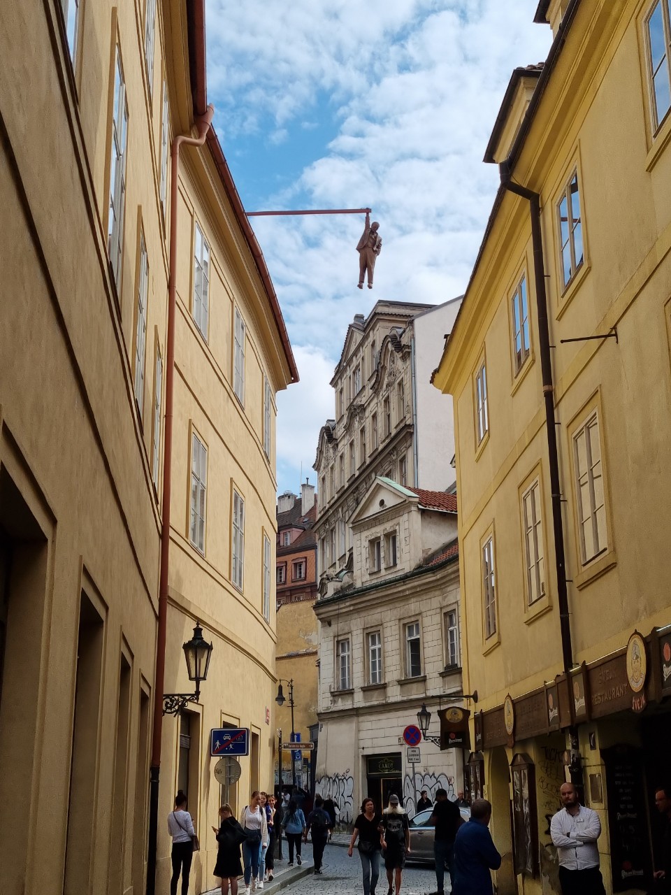 왜 시내 여러 곳에서 그의 작품들이 눈에 띌까? 프라하시와 체르니가 특별한 프로젝트를 진행한걸까? 나름 몇가지 이유른 생각해 보았지만 답을 주는 사람이 없으니 알수없는 일이다. 단 개인적으로 그의 작품들을 보면 어렵지가 않다. 그렇다고 아무런 메시지가 없는 것도 아니다. 거기에 관심과 호기심을 불러일으키기도 충분하다. 현실을 풍자하면서도 마냥 비꼬기보다 직관적인 공감을 갖고 살짝 철학적이게도 한다.