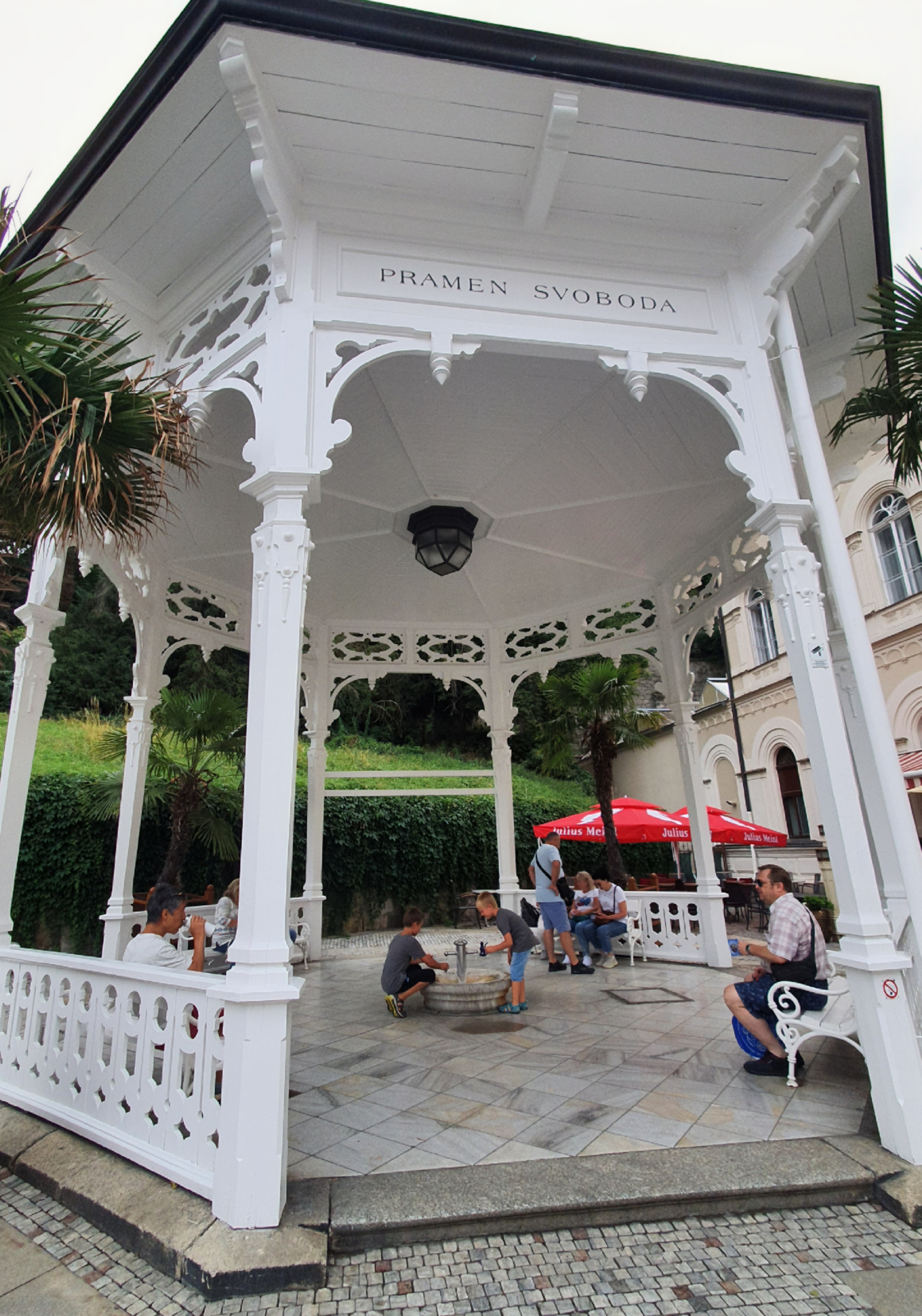 온천이라 하지만 우리가 생각하는 뜨끈한 탕에 몸을 담그는 그런 곳은 아니다. 짧은 시간의 방문으로는 테플라 Tepla 개천을 따라 조금씩 맛이 다르고 온도가 다르고 개발된 시기가 다른 온천수를 컵에 받아 마시는 것으로 온천을 즐기는 것이다. 한번 먹는 것으로 뭔 효과가 있을지 모르겠다. 오히려 잠시라도 김 모락모락 오르는 탕에 들어가는 것이 더 좋지않을까 하는 생각만 더 간절해졌다.