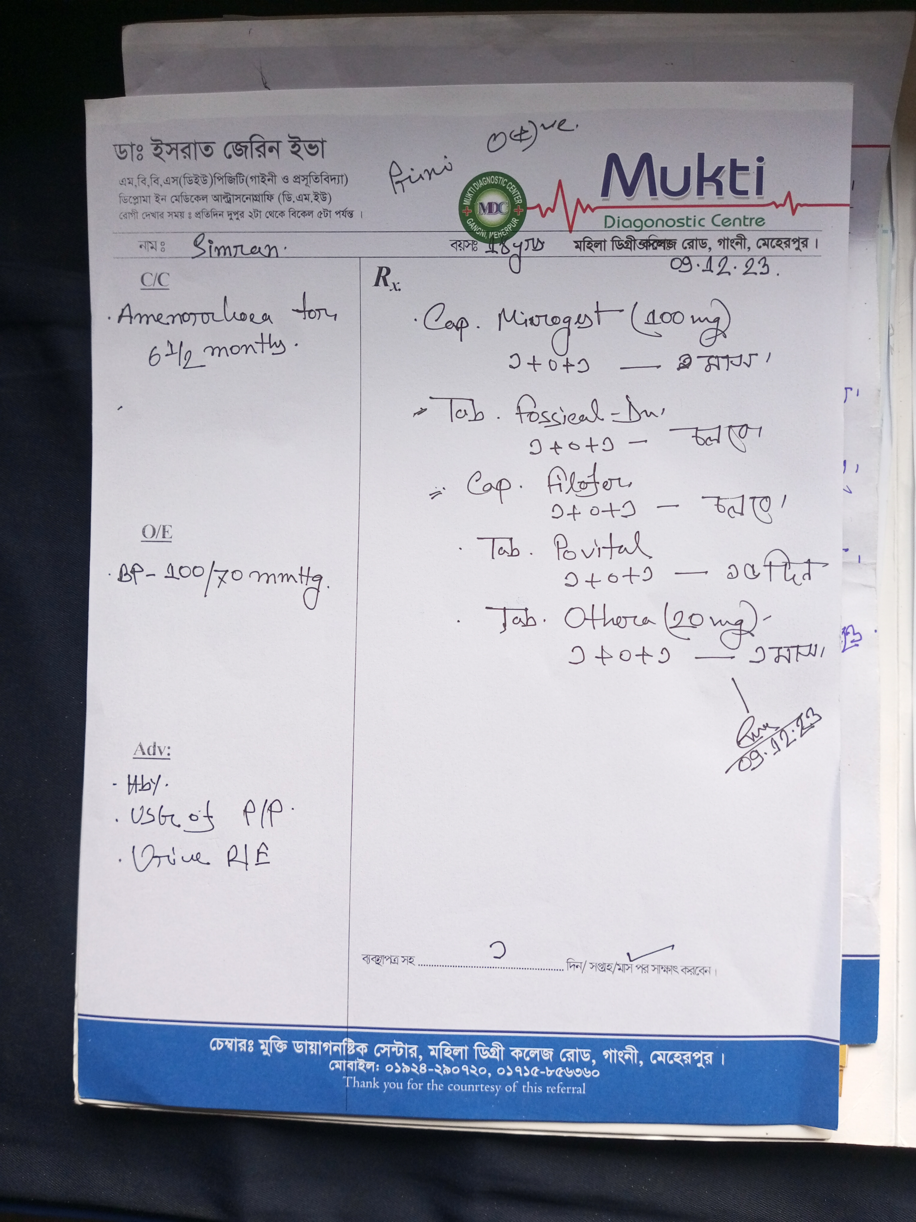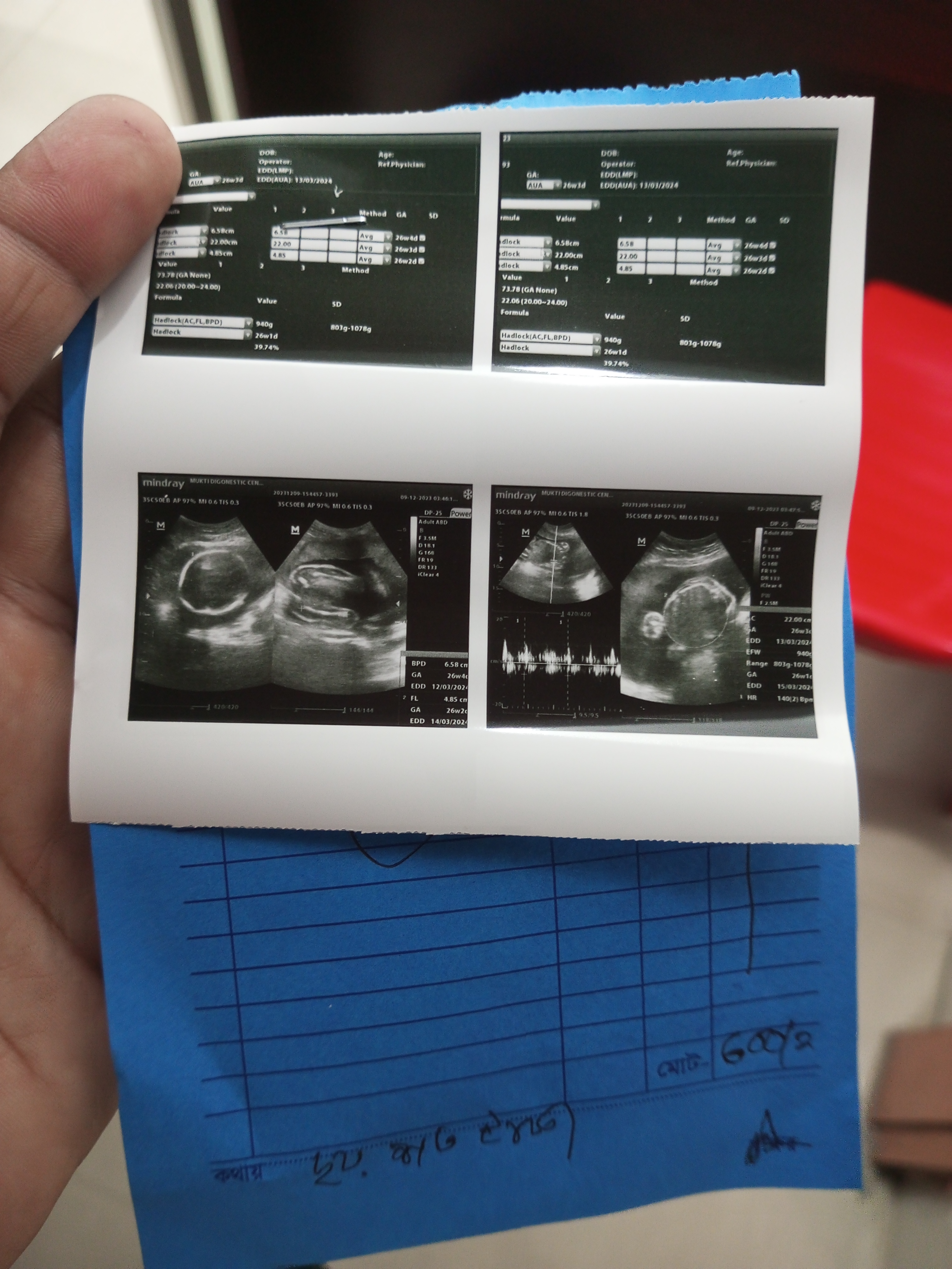 এরপর ম্যাডাম আমার রিপোর্ট দেখলো। বাচ্চার ওজন সাড়ে পাঁচ মাস বয়সের ৯০০ গ্রাম পার হয়েছে বলে বললেন ঠিক আছে। এতে চিন্তার কিছু নেই। এখন থেকে ঠিকঠাক ভাবে খাওয়া দাওয়া করবেন, হাটাহাটি করতে বললেন। হওয়ার আগ পর্যন্ত ভালো পর্যায়ে এসে যাবে। আর বেশ কিছু ওষুধ লিখে দিলেন পাশাপাশি দুধ ডিমসহ বিভিন্ন প্রজেক্ট খাবারের কথা বলে দিলেন। আর যাবতীয় নিয়ম বলে দিলেন। এরপর আমরা সেখান থেকে বিদায় নিয়ে চলে এলাম। আশা করি আপনারা সকলে আমার এবং আমার বাচ্চার জন্য দোয়া করবেন। যেন সুস্থ অবস্থায় সুস্থ সবল নেক হায়াত সম্পন্ন একটি বাচ্চা আল্লাহ আমাকে দান করেন।