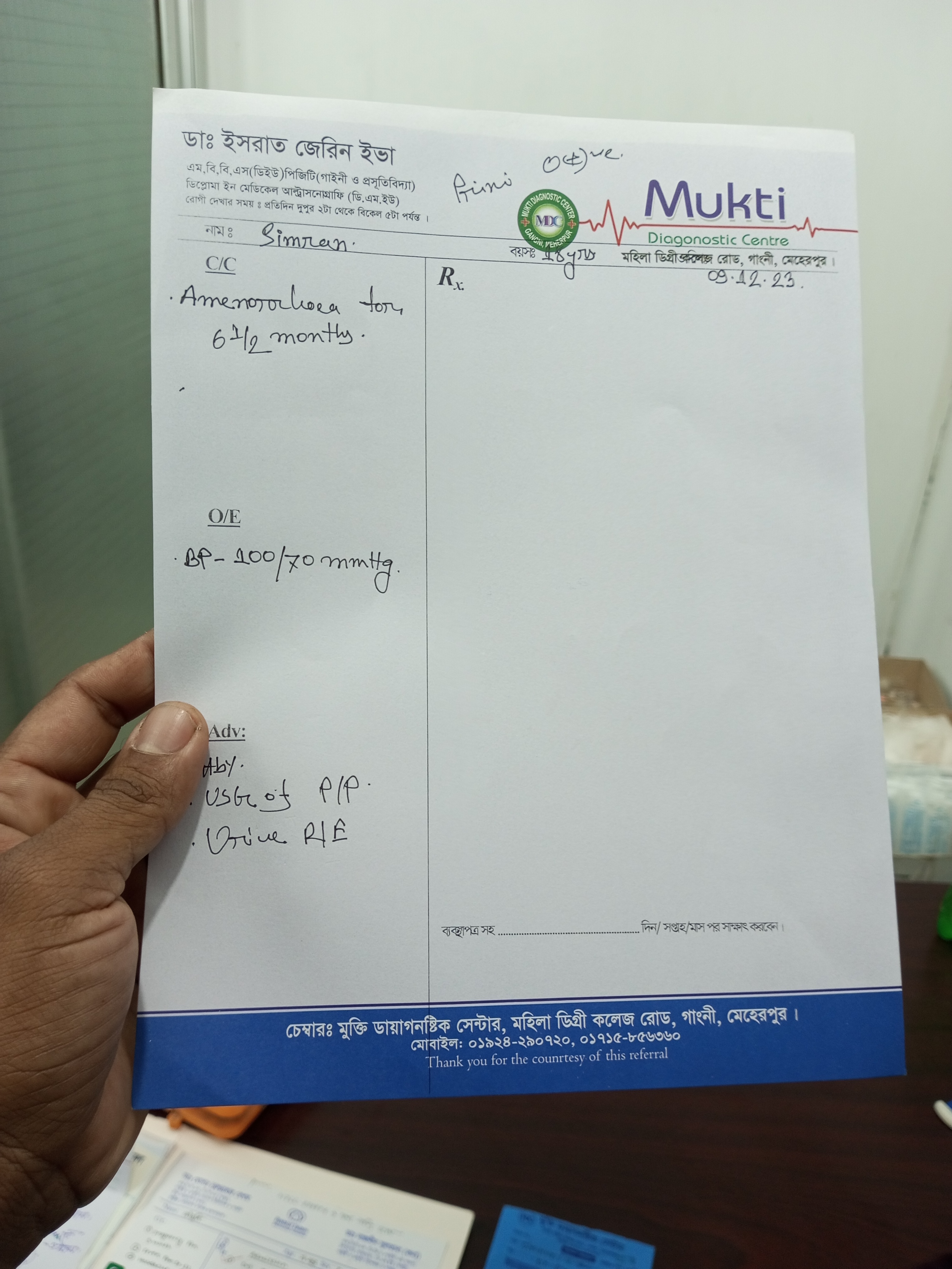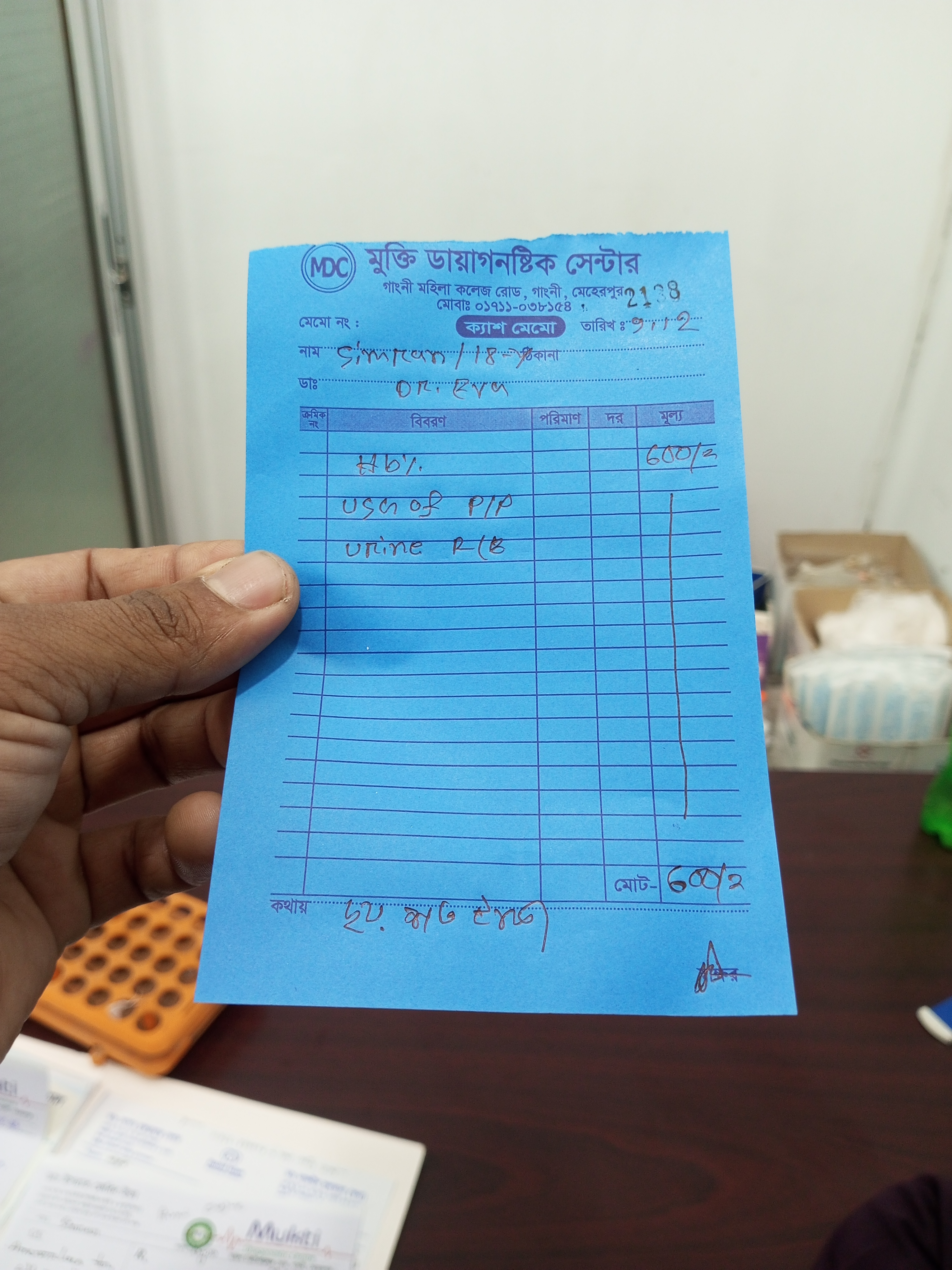 যেহেতু পাঁচ মাস পার হয়ে গেছে, প্রায় ছয় মাসের পাশাপাশি অবস্থান। এজন্য উনার কাছে এসেছি বাবুর অবস্থান জানার জন্য। তাই উনে তিনটা টেস্ট দিলেন। আল্টাসনো করতে হবে রক্ত পরীক্ষা আর ইউরিন পরীক্ষা। রক্ত পরীক্ষা করার বিষয়টা আমার কাছে বেশ ভয় লাগে কারণ ইঞ্জেকশনের মাধ্যমে রক্ত বের করাটা আমার কাছে বেশ কঠিন। তবুও টেস্ট বিষয় ভয় পেতে গেলে চলবে না,এদিকে আমার হাজবেন্ড আমার পাশে থাকলে মনে বেশ সাহস থাকে।
