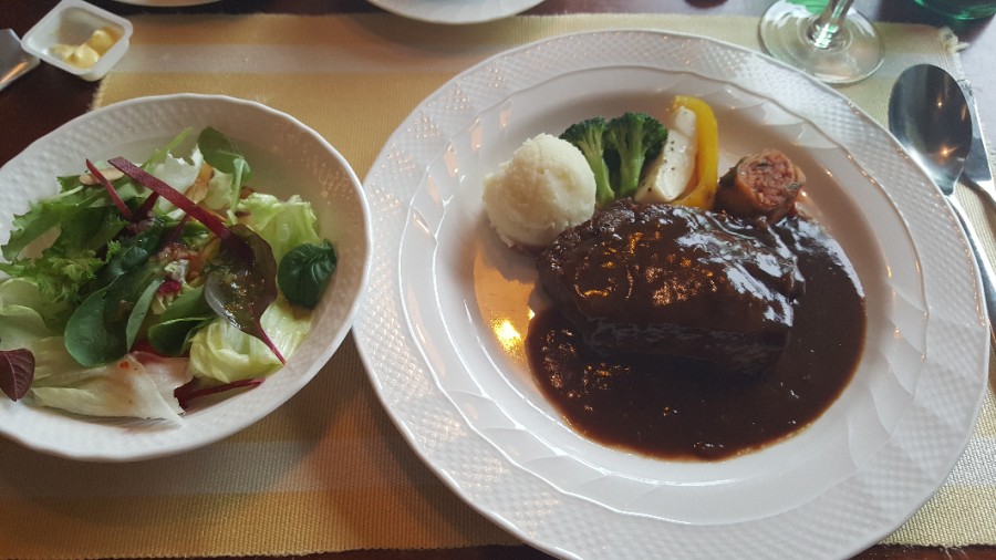 본 메뉴인 스테이크 입니다. 두툼한 등심살이 먹음직스럽습니다.