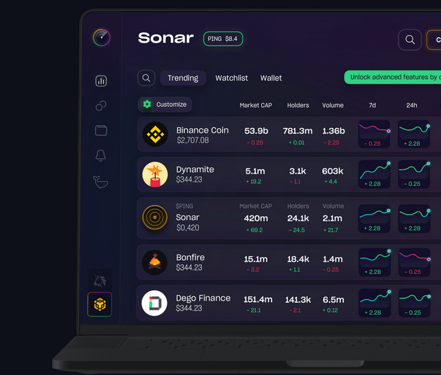 Sonar is a platform aimed at analyzing and tracking crypto on the BSC and ETH networks with ease. In Sonar, users can customize their dashboard, according to the information they need, this way users only get information that is important to them. But that's not all, there are several other features of Sonar: