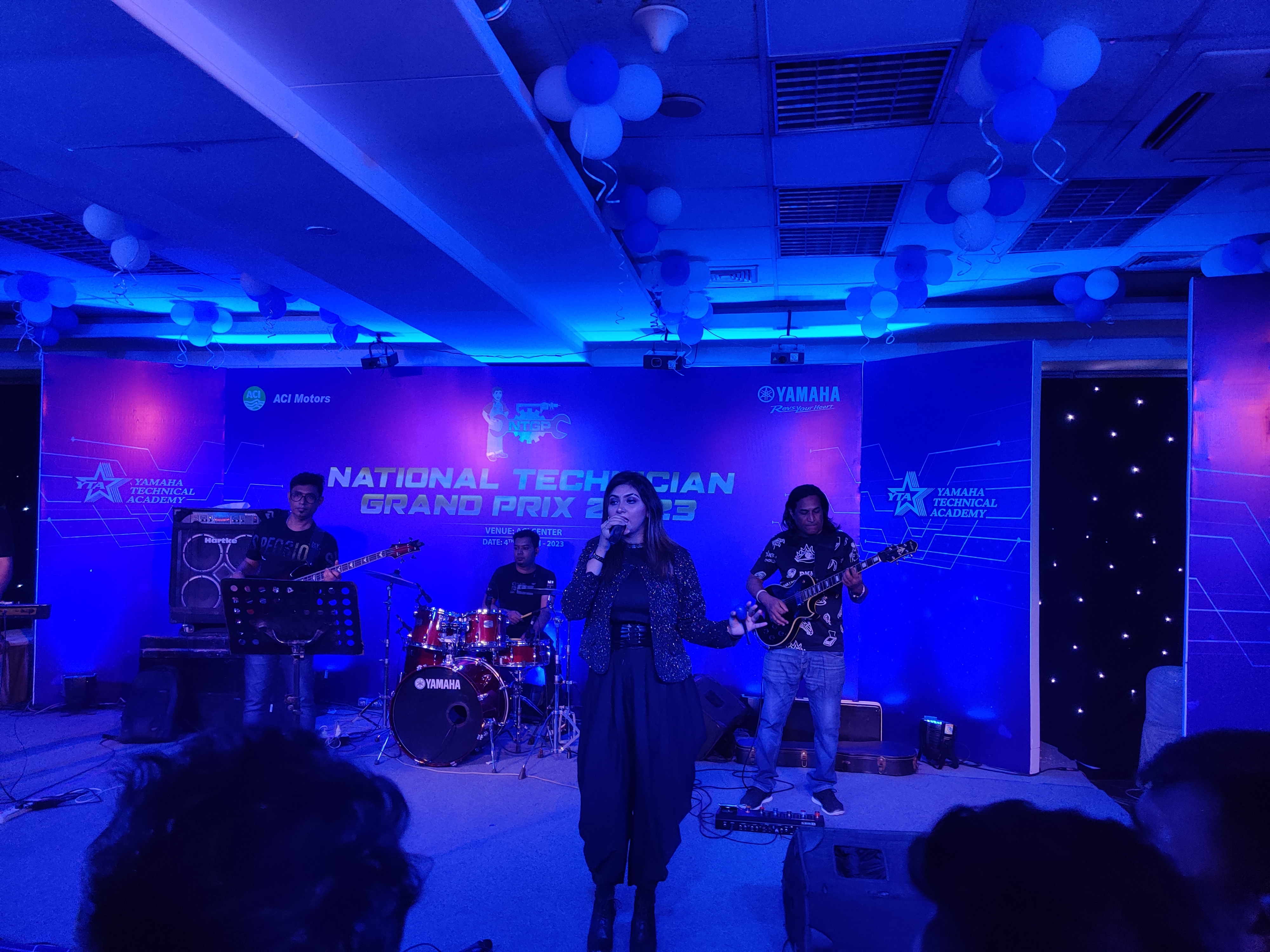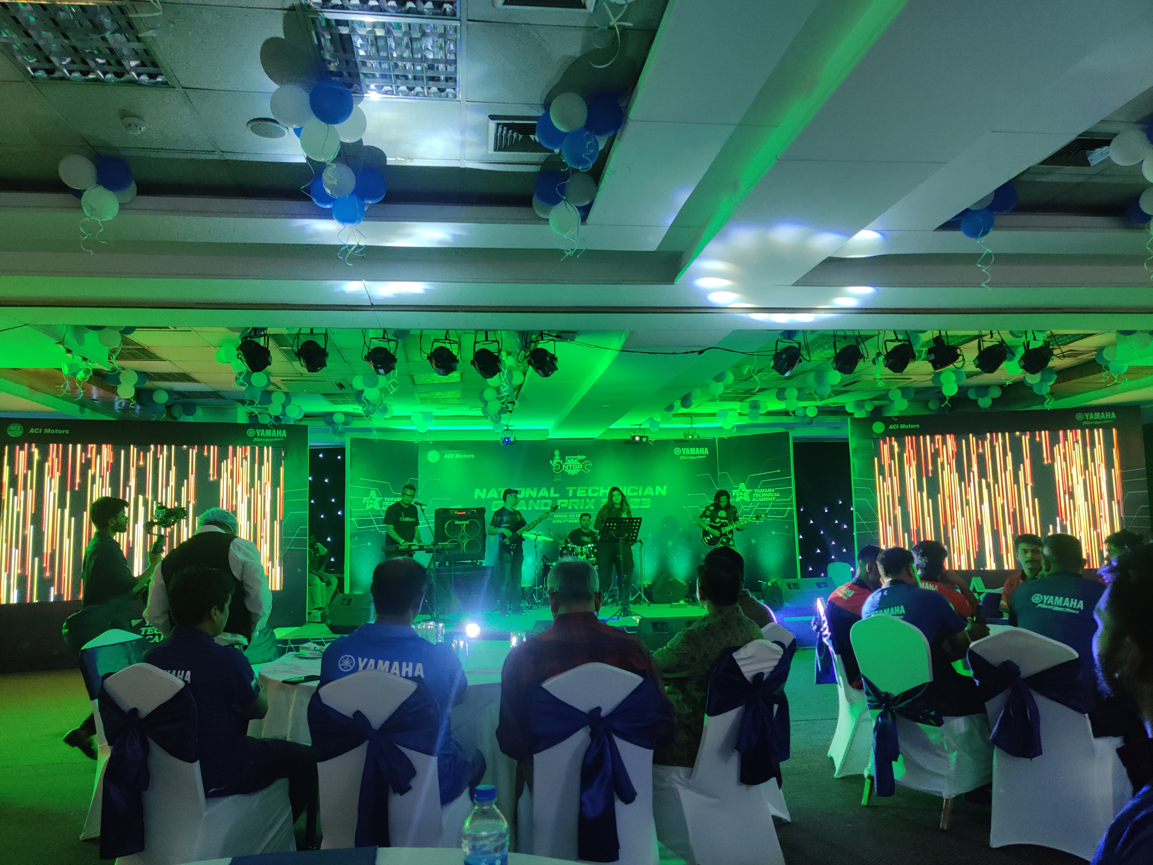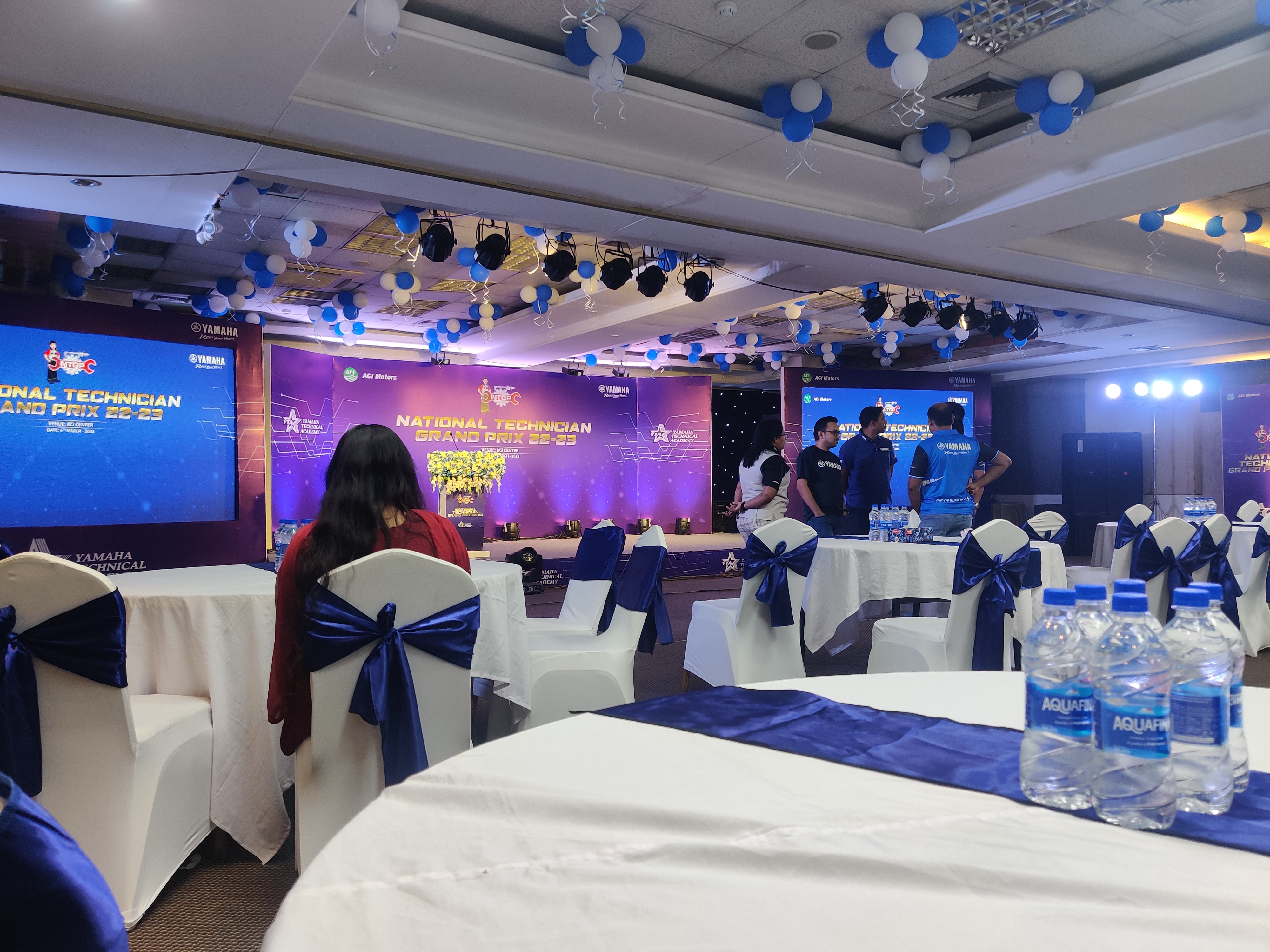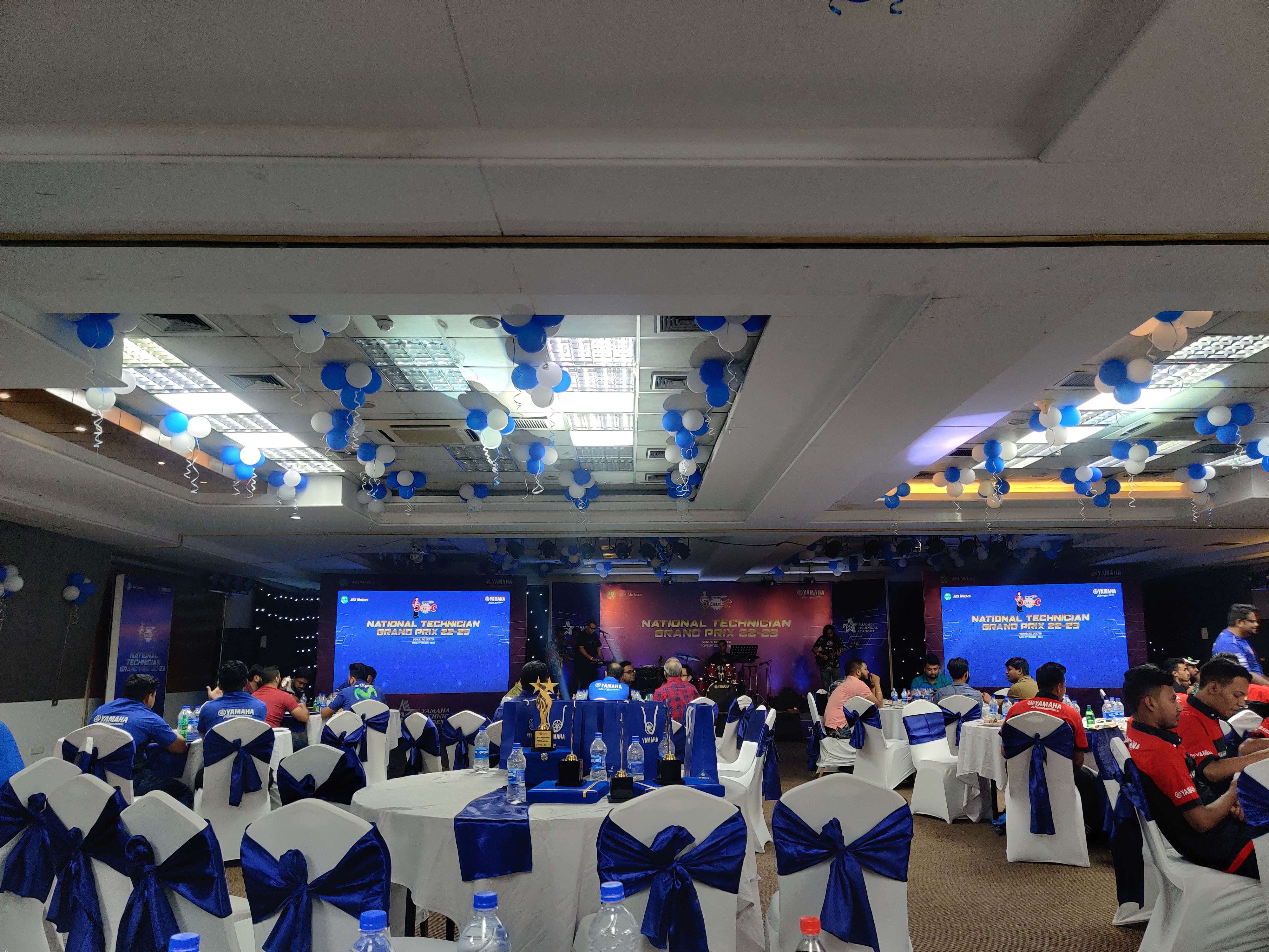 এরপর সোজা উপরে চলে গেলাম। গিয়ে দেখি প্রোগ্রাম শুরু হয়নি এখনো। তো স্যার আমাদের বসালেন একটা টেবিল এ নিয়ে। যেহেতু আমরা সেই স্যার এর আয়তায় রয়েছি। স্যার আমাদের ছবি নিলেন। এরপর আমরা নিজেরাও ছবি তুললাম। এরপর সব বড় স্যার রা আসতে শুরু করলেন। শুরু হয়ে গেলো আমাদের প্রোগ্রাম। এই প্রোগ্রামটি মূলত ছিলো টেকনিশিয়ান দের নিয়ে। National Technician Grand Prix ছিলো যার নাম। সারা বাংলাদেশের ইয়ামাহা সার্ভিস সেন্টার গুলো থেকে দক্ষ টেকনিশিয়ান রা এখানে অংশগ্রহন করে। তাদের থেকে সেরা ৫ জনকে পুরস্কৃত করার জন্যই আজকের এই প্রোগ্রাম। একে একে সবাই বক্তৃতা প্রদান করেন। সবই শুনতে হয়। তবে তারা সবাই গুরুত্বপূর্ণ কথা বলতেছিলো। তাই শুনতে বেশ ভালোই লাগছিলো। এক পর্যায়ে বিজয়ীদের হাতে পুরষ্কার তুলে দেওয়া হয়। আমি যতটুক পারি ছবি তোলার চেস্টা করি। যদিও সেখানে ছবি তোলার আলাদা ব্যবস্থাই ছিলো। এরপর আমরা স্যার দের সাথে ছবি তুলি। যদিও সব গুলো ছবি আমার কাছে নাই। একটি ছবি ম্যানেজ করেছি অনেক কষ্টে। আর বাকি গুলো আমার তোলা।