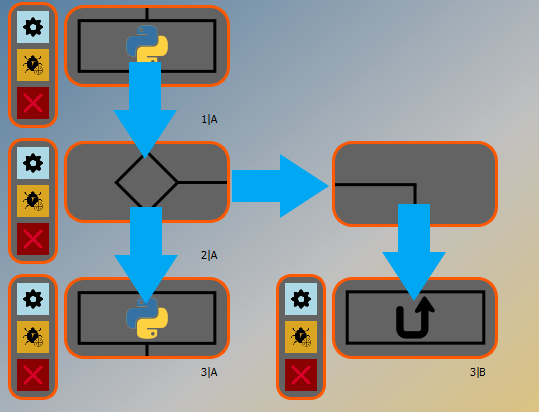 The execution flow is processed always from top to bottom and from left to right. (Of course there is a jump-to element available)