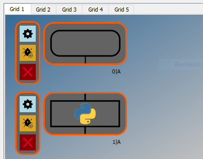 - Start debug: Start the execution on all grids with a delay between the elements (adjustable under File-> Settings, default: 500ms)