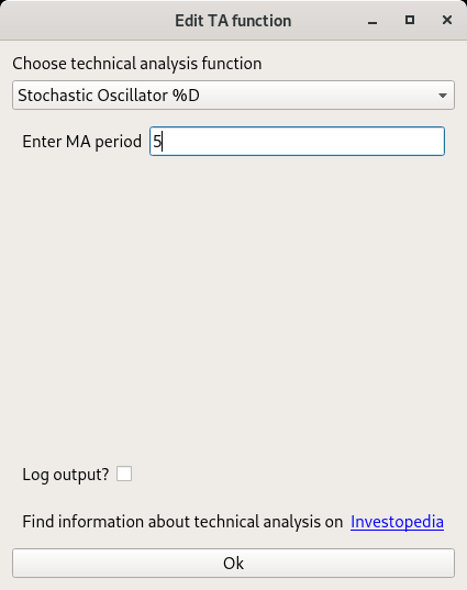 As the name suggests, the Technical Analysis element calculates trading indicators based on OHLC input data. This elements expects a Pandas Dataframe with named columns ['open', 'high', 'low', 'close'] as input. You can use Binance OHLC query to fetch OHLC data in the correct format. The Technical Analysis element will extend a column to the input dataframe with the configured indicator.