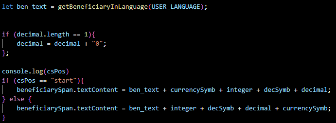 This will successfully change the number if a beneficiary payout exists. We also have to update the value in the dropdown menu. To do this, we will need to parse the text before the value (again assuming the user could be reading in another language with other currency symbols). We will make a new parse function to parse the text before the value: