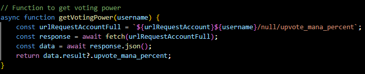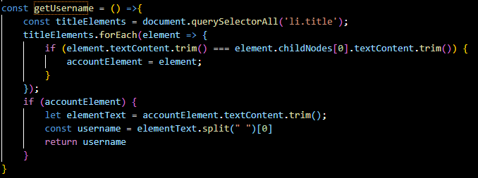 Now, all I need to do is link the visual display to the actual value for the user’s voting power. Luckily, my dad already made a function for retrieving the user’s voting power. I just need to make a function to retrieve the username from the page: