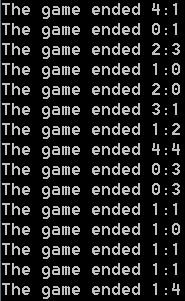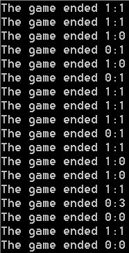 One last technicality is that if both teams should score in one minute then no goal is awarded at all since I found it unrealistic for two goals to occur in one minute and this is very unlikely anyway.