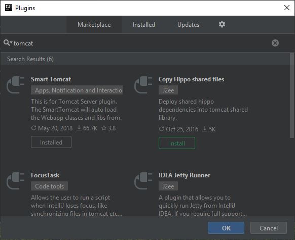 4.) In the Marketplace tab search for Smart Tomcat and install it.