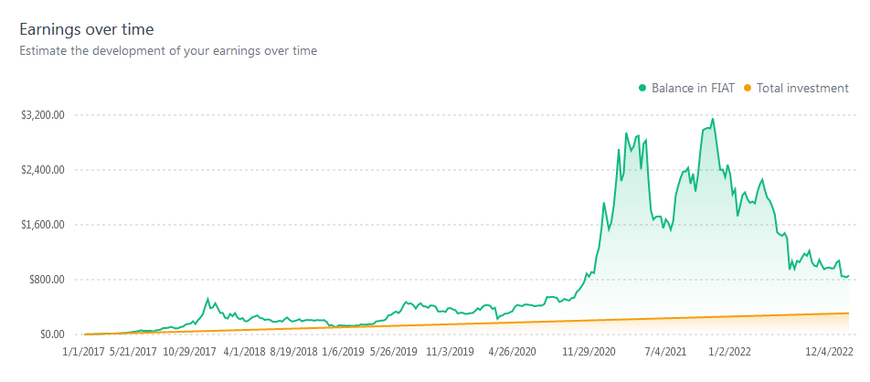 Starting with your first purchase which was at a price of $ 909 per btc and made a purchase every week.