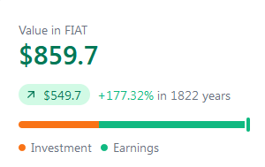 This would amount to over 310 weeks of $ 1 invested and this comes to $310 in terms of fiat dollars.