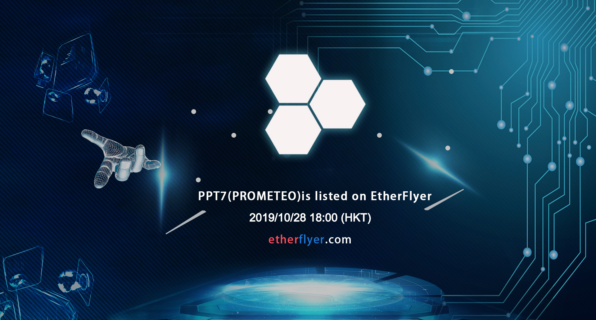 PPT7/ETH trading pair will be available on EtherFlyer and open trading market at 2019/10/28 18:00 (HKT);