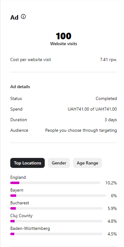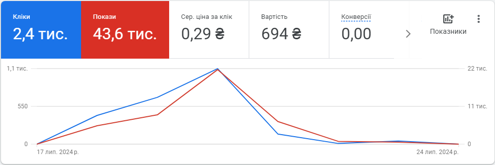 Google showed the absolute majority of ads in India, while Instagram - in Europe. Therefore, it is not possible to compare the cost of clicks. However, with approximately equal budgets, I received 2,400 clicks on Google, and only 100 on Instagram. The difference is incredible.