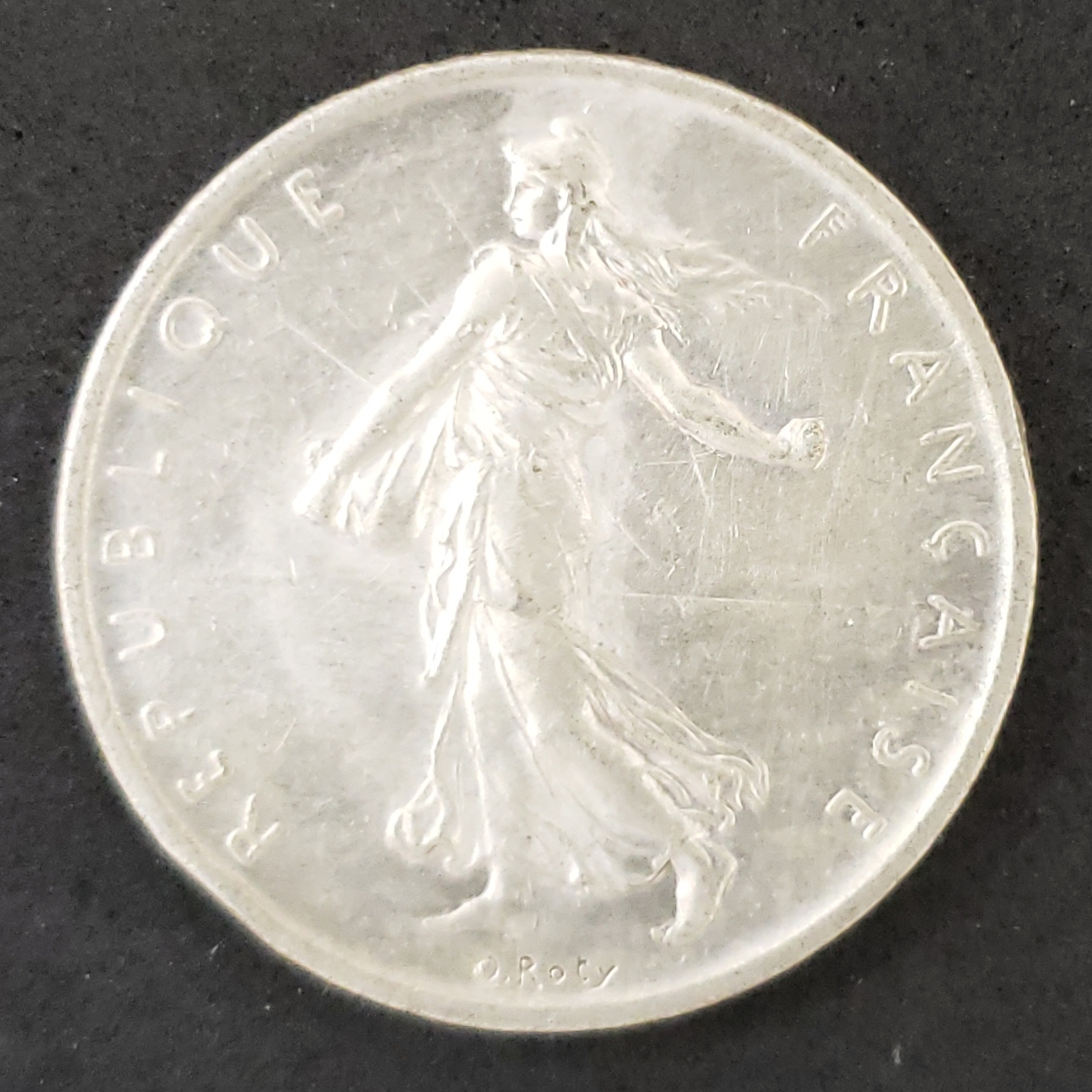 O obverso mostra La Semeuse (A Semeadora) olhando à esquerda.