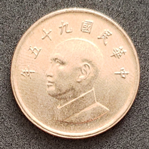 O obverso mostra o busto de Chiang Kai-shek olhando à esquerda, com a seguinte frase acima "年十七國民華中" que significa "República da China Ano 70".