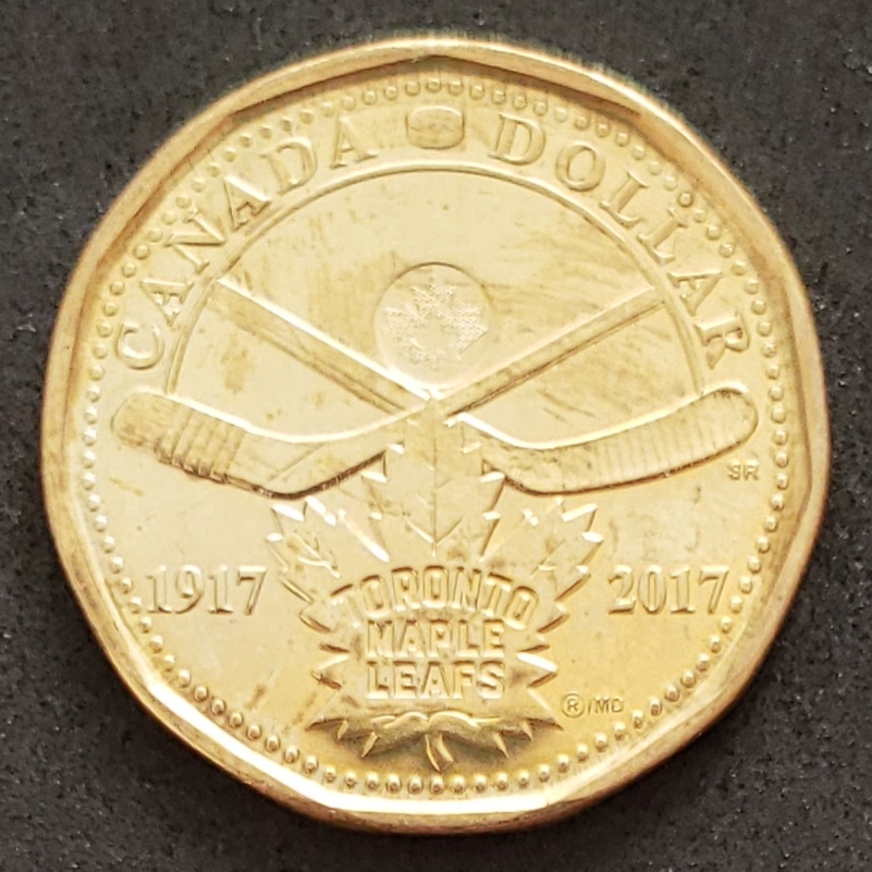 Esta moeda foi emitida para comemorar o centésimo aniversário do Toronto Maple Leafs.