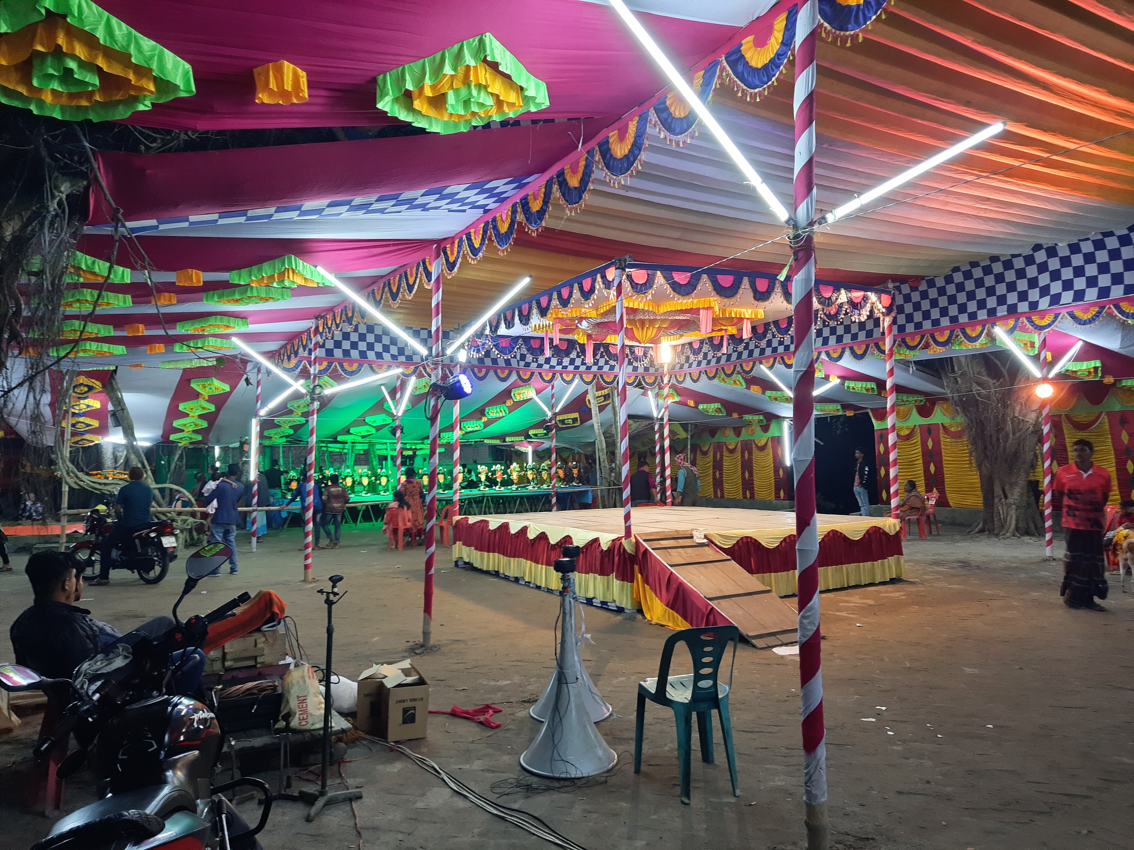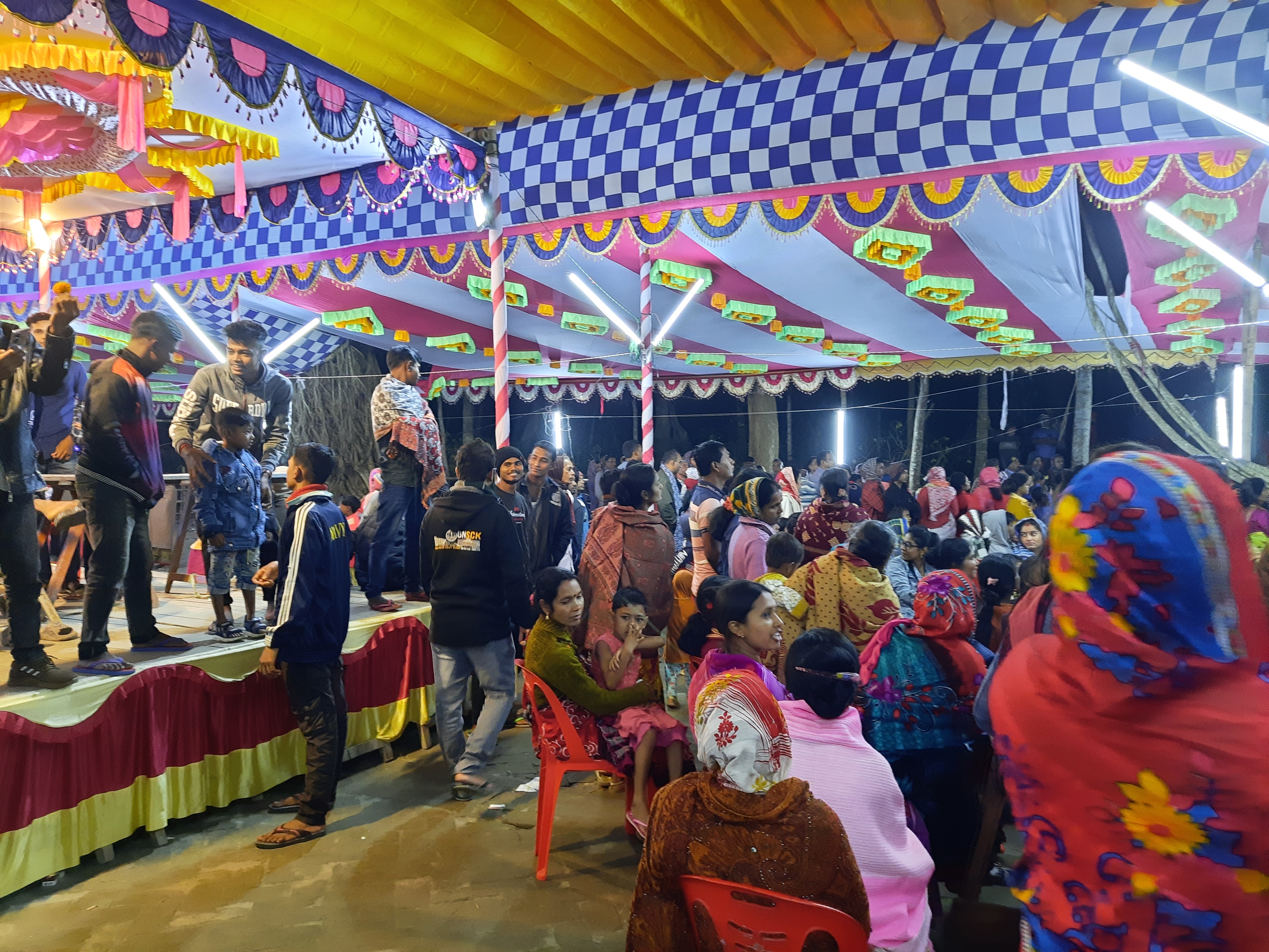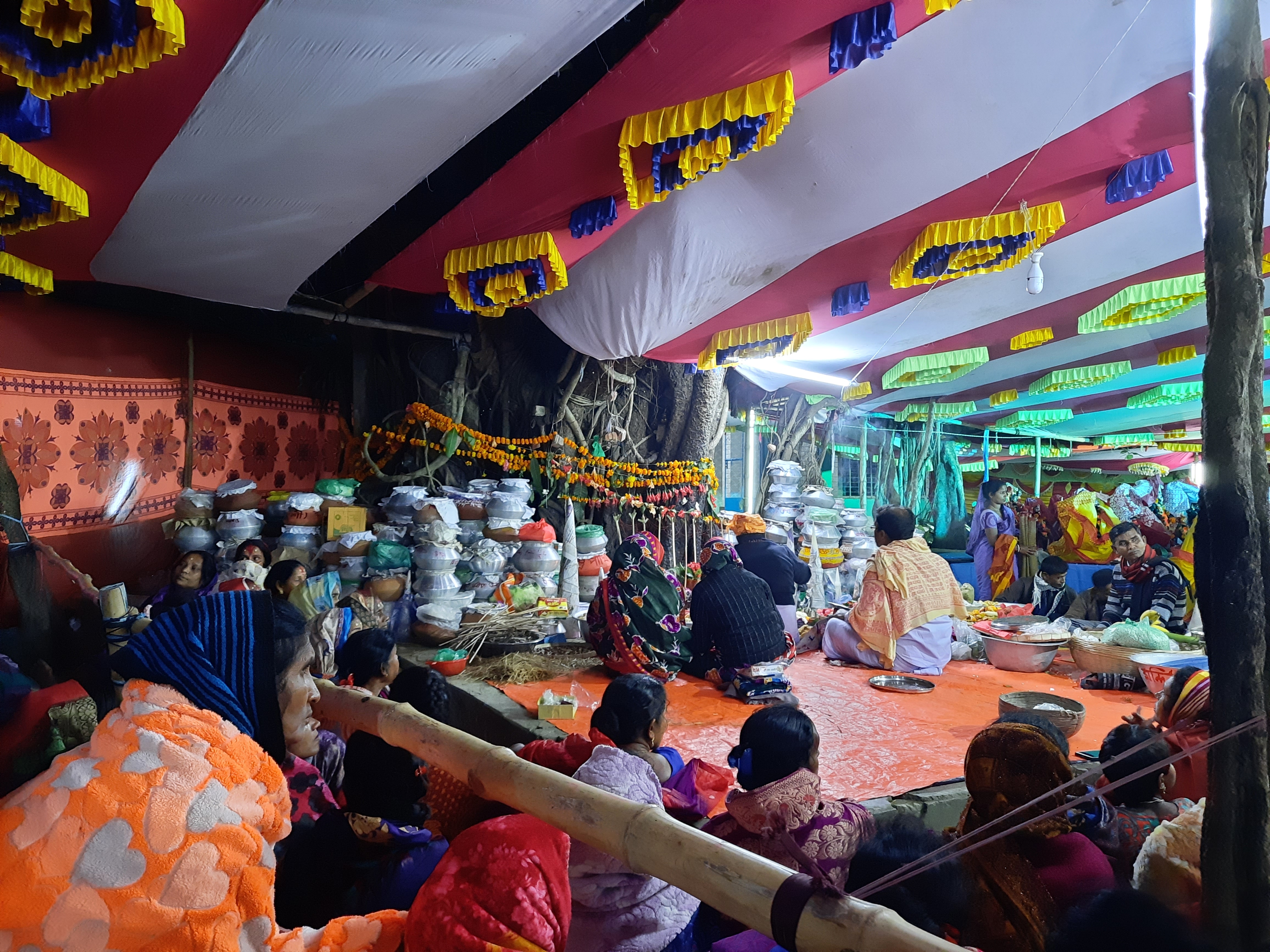ভোর রাত্রে পুজো সম্পন্ন হওয়ার পর এইখানে বাতাসা ছাড়ানো অনুষ্ঠান হয়ে থাকে । মিষ্টি, ফল, সন্দেশ ইত্যাদিও রাখা হয় সেগুলো পুজোর শেষে সবার হাতে হাতে দেওয়া হয়। এই গ্রামে এসে এই নতুন কিছু দেখার সুযোগ হয়েছিল আমার। উপোস থেকে পুজো দেখতে যদিও আমার অনেকটা কষ্ট হয়ে গেছিল । পুজো শেষ হওয়ার দিন রাতে এখানে কবি গানের অনুষ্ঠান হয়ে থাকে। এই বছর দুইদিন কবিগানের অনুষ্ঠান ছিল, ৬ এবং ৭ তারিখ । তবে ৭ তারিখের কবি গানের অনুষ্ঠান প্রচন্ড বৃষ্টির কারণে বাতিল করা হয়। ৬ তারিখ রাতে যে কবিগান হয়েছিল সেখানে আমরা সবাই গেছিলাম এই অনুষ্ঠান দেখার জন্য।