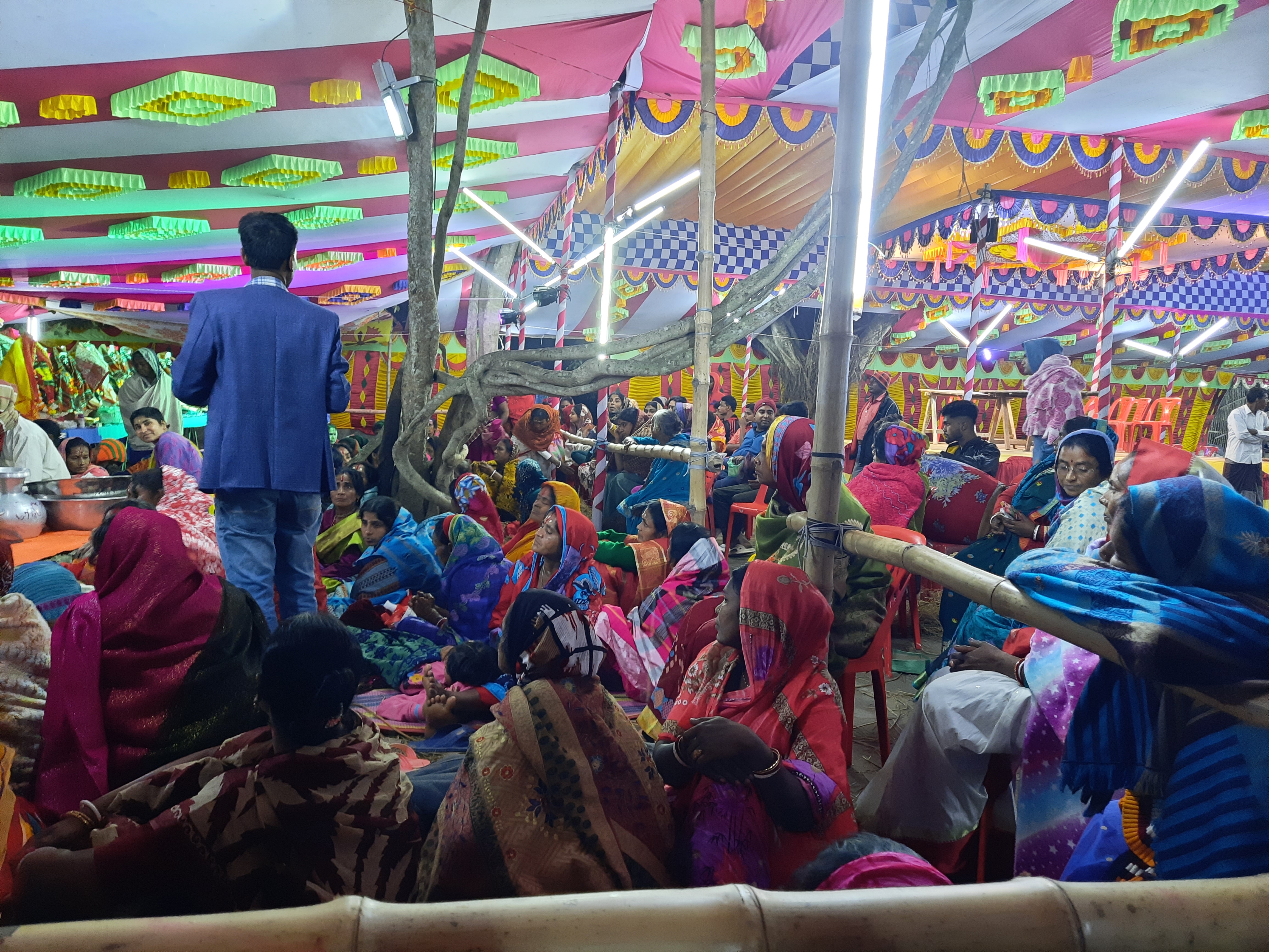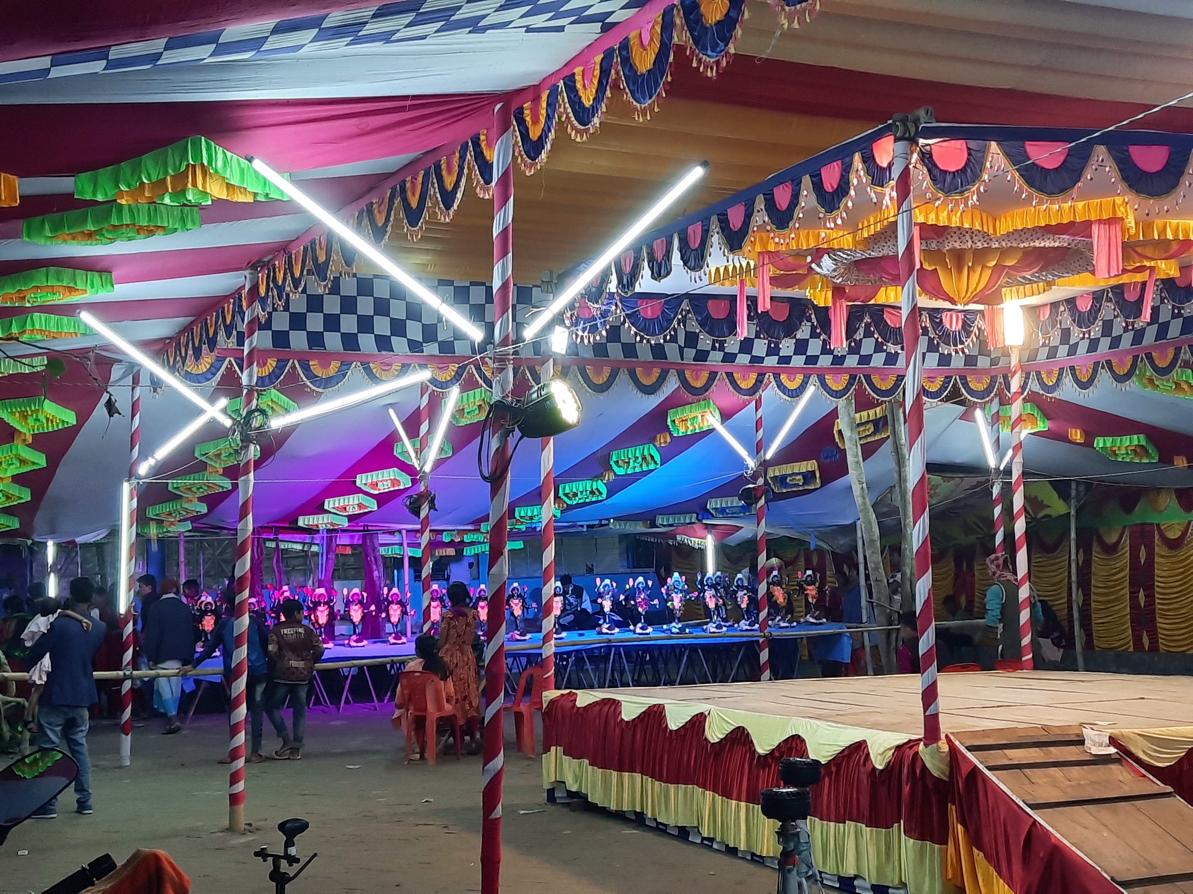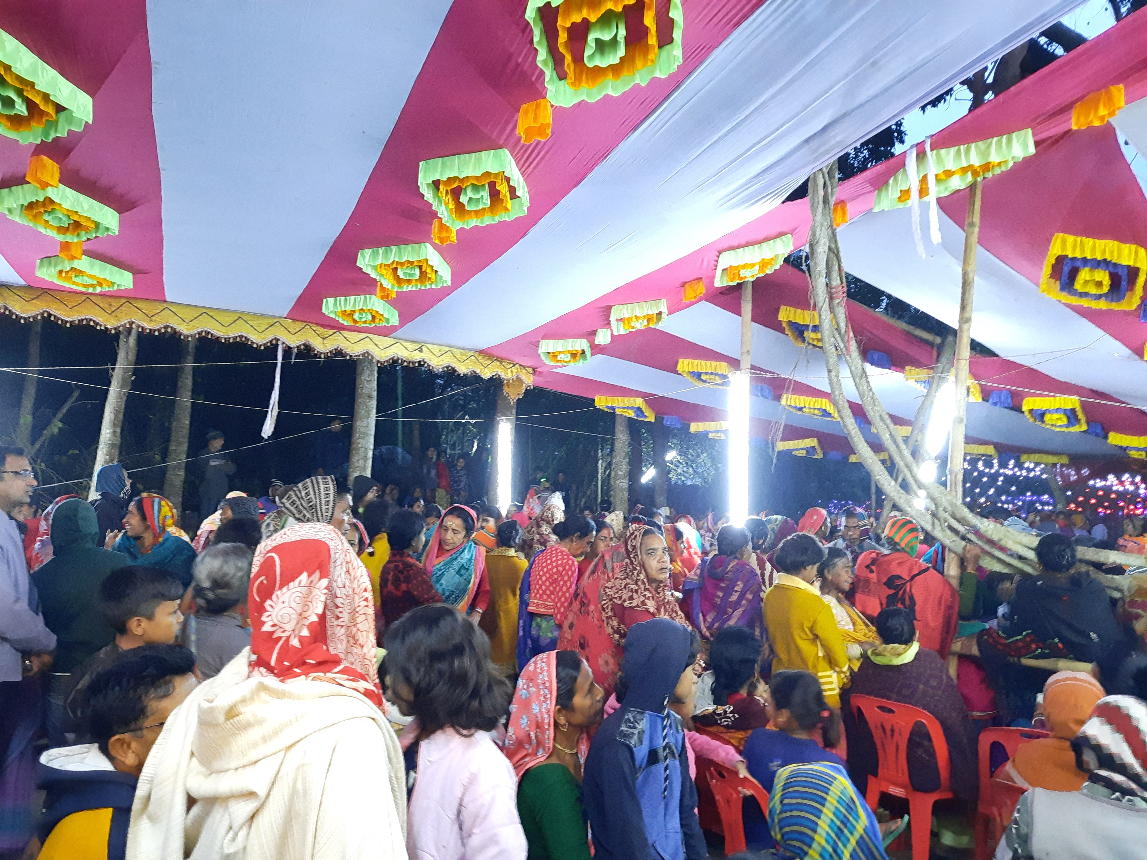 ভোর রাত্রে পুজো সম্পন্ন হওয়ার পর এইখানে বাতাসা ছাড়ানো অনুষ্ঠান হয়ে থাকে । মিষ্টি, ফল, সন্দেশ ইত্যাদিও রাখা হয় সেগুলো পুজোর শেষে সবার হাতে হাতে দেওয়া হয়। এই গ্রামে এসে এই নতুন কিছু দেখার সুযোগ হয়েছিল আমার। উপোস থেকে পুজো দেখতে যদিও আমার অনেকটা কষ্ট হয়ে গেছিল । পুজো শেষ হওয়ার দিন রাতে এখানে কবি গানের অনুষ্ঠান হয়ে থাকে। এই বছর দুইদিন কবিগানের অনুষ্ঠান ছিল, ৬ এবং ৭ তারিখ । তবে ৭ তারিখের কবি গানের অনুষ্ঠান প্রচন্ড বৃষ্টির কারণে বাতিল করা হয়। ৬ তারিখ রাতে যে কবিগান হয়েছিল সেখানে আমরা সবাই গেছিলাম এই অনুষ্ঠান দেখার জন্য।