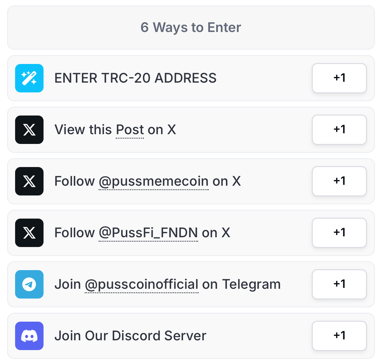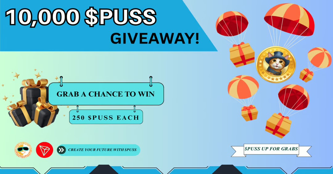 To Celebrate Upcoming Major Listing, We are Giving Away 10000 $PUSS to 40 Winners from Official PussFi X Gleam Competiton , Participate & WIN 250 $PUSS NOW!