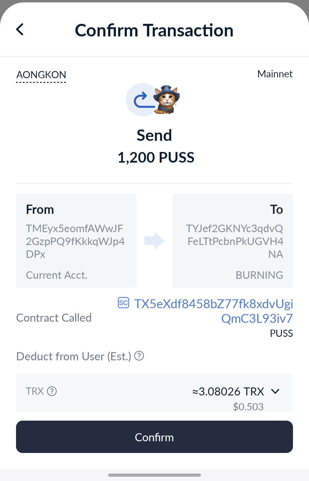 $PUSS Burn Address: TYJef2GKNYc3qdvQFeLTtPcbnPkUGVH4NA