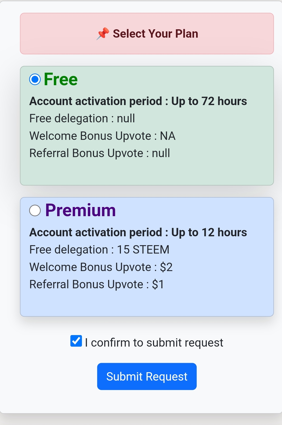 and select your plan and click on 'I Confirm to Submit Request' and click on 'Submit Request'.