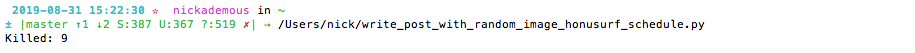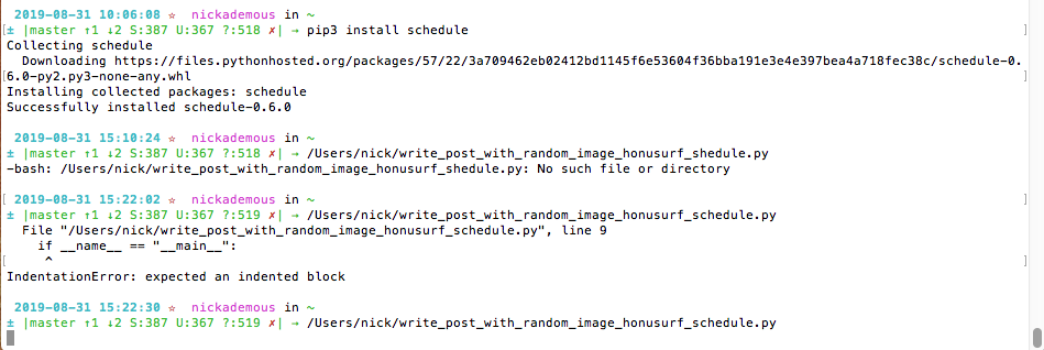def job(): schedule.every(10).minutes.do(job) There's still a lot I need to do to make the script better. I.E. delete image after posting so I don't get repeats!! The image folder is just used organize the groups, and the beempy still reads the images from the home directory, so that could be tweaked a bit. I also need to throw the hyperlink in to the large image! Also optimizing my image, getting AI to comment on the image and describe it, lol! Tons of work too do! If anyone has any suggestions and or additions please post in the comments below! All tests worked out well, now for adding some more images and getting this set up for my other accounts! Wow I really like this Python stuff a lot!