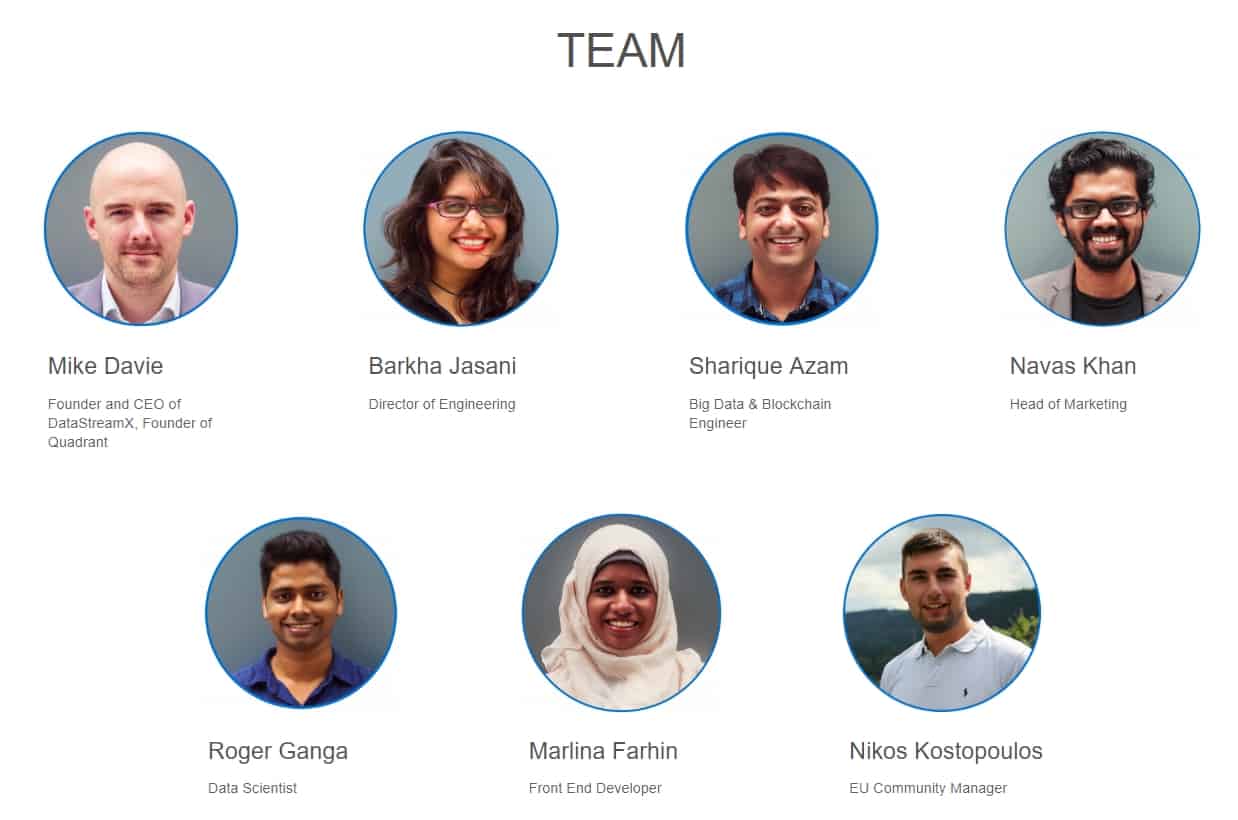 DataStreamX - The First Creator and User of Quadrant Network DataStreamX (DSX) has been operating data and data brokerage business markets since 2015. It's mission is to release the power of data from the world by facilitating transacting data between buyers and sellers on their platforms. The Quadrant Protocol is a separate project aimed at continuing this mission. DSX will provide development services for Quadrant Protocol. It will support Quadrant networks in building protocols to help users solve real-world problems and to create a foundation of transparency and authenticity in the data economy.