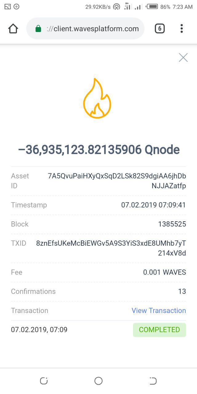 ❇️ 36.9 million QNODE burnt already. All QNODE will be burnt on or before February 20th