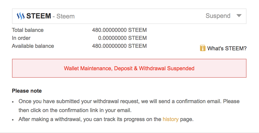 QUESTION: STEEM wallet maintenance end?ries9112 (28)in #question • 8 years ago Hey guys I was just wondering if anyone knew when this STEEM wallet maintenance is going to end? Seems to be going on on both Binance and Poloniex... #news #cryptocurrency #steem #trading