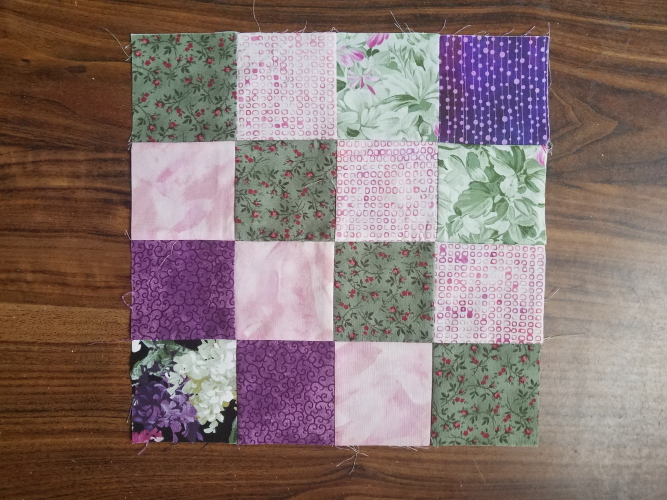 I thought the Checkerboard Block was a lot of fun! We learned about chain piecing, butting seams, and notching. This is all new vocabulary for me, and I'm sure it's good exercise for my brain.