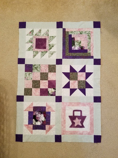 Although I have been constructing garments since I learned how to sew in 9th grade Home Economics class, I only recently felt the urge to try quilting. One influencing factor was my acquisition of several small unfinished quilt projects left behind by my mother-in-law when she went into an assisted living facility a few years ago. She has since passed away, and I would like to learn how to properly finish her projects. Another influence has been my neighbor and friend, Ms B., who always has at least one quilt in process. I see her finished products regularly and have thought maybe I should give that a try.