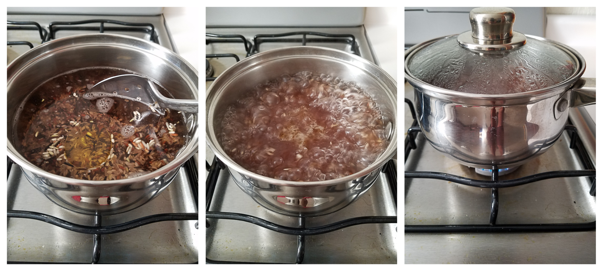 2 - Cover with lid and lower heat to simmer for 45 minutes or until rice is soft and water has evaporated