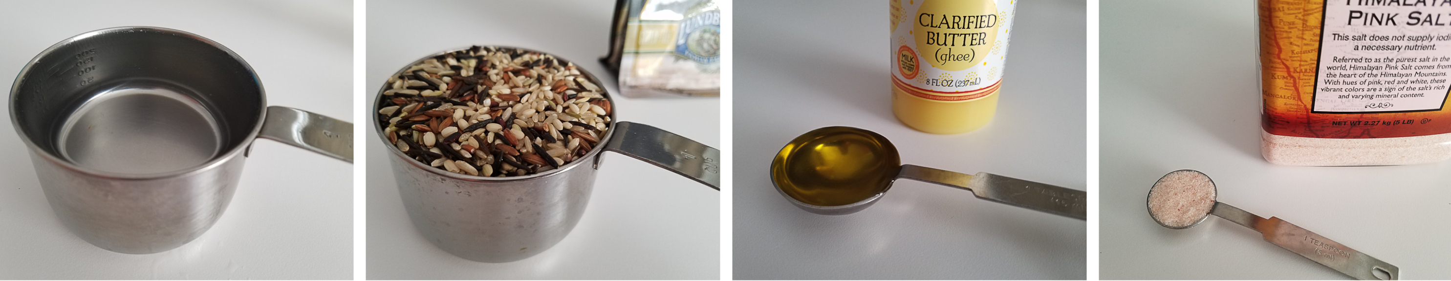 1 - Add water, rice, ghee and salt to medium sauce pan on high heat and stir occasionally until boil