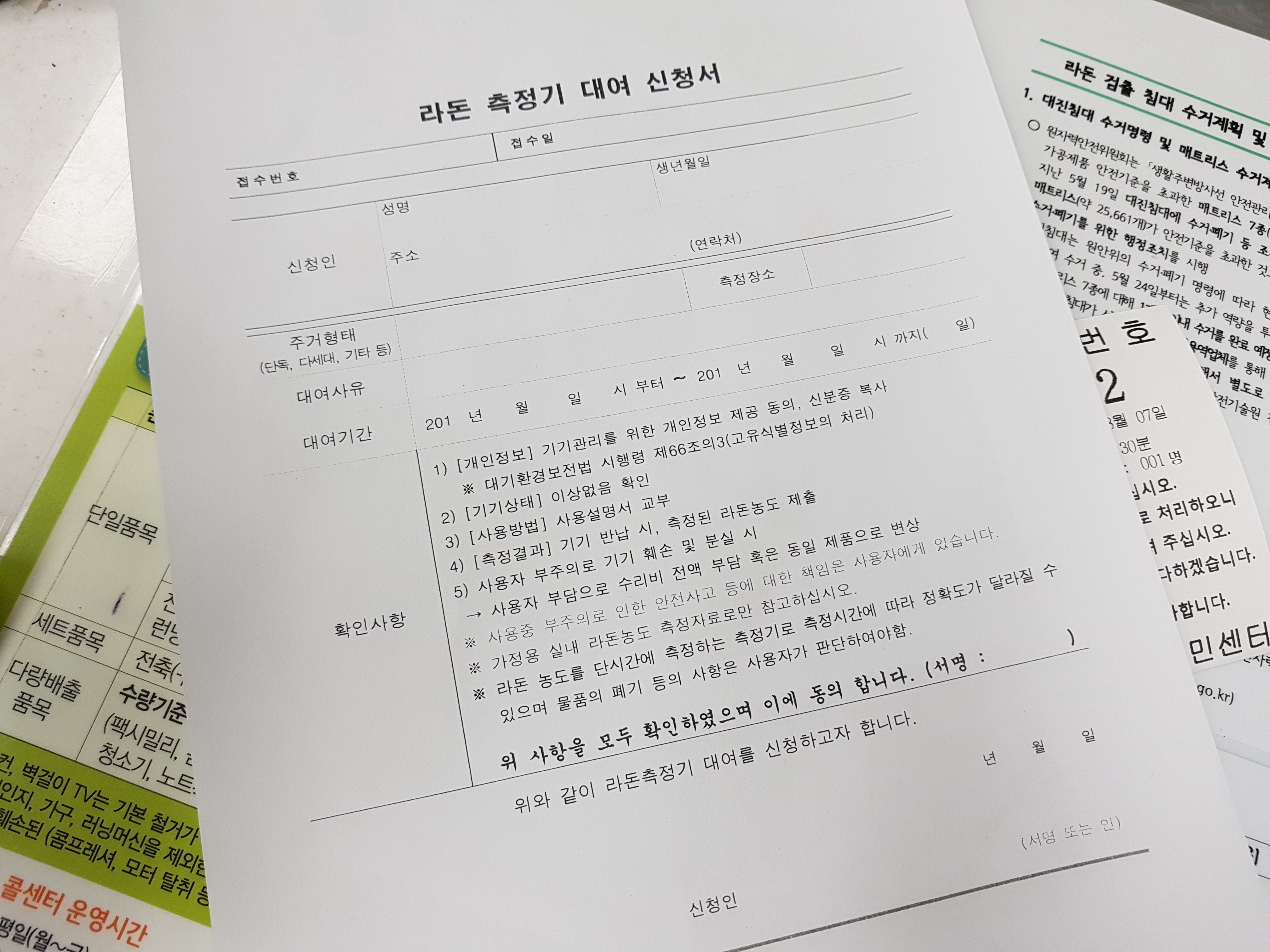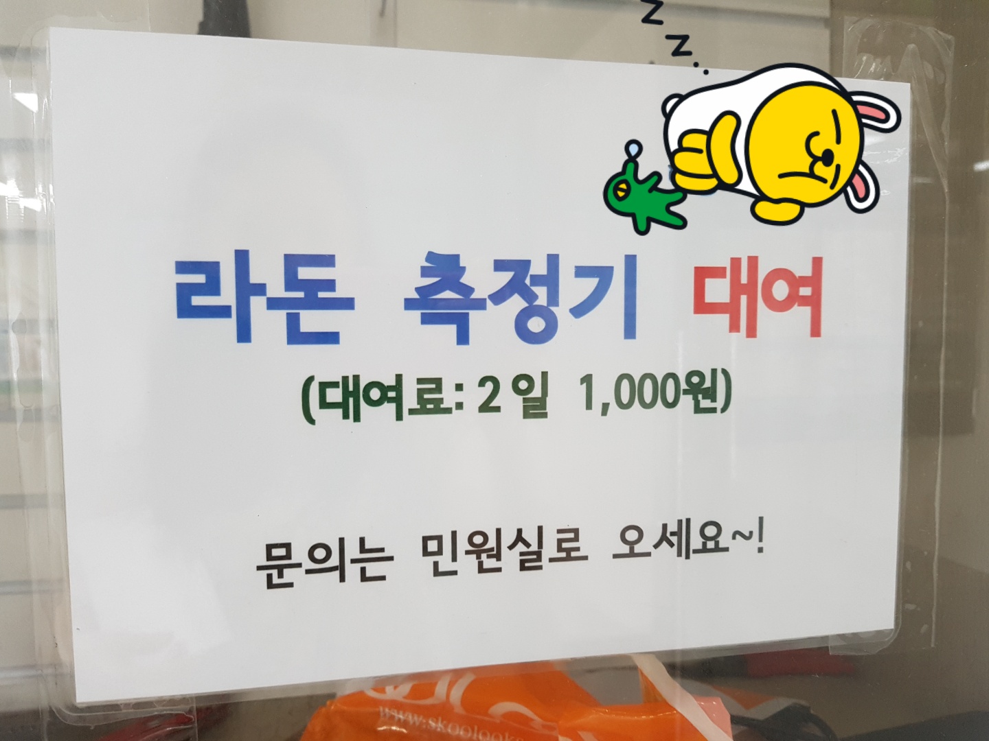 엊그제 신랑이 주민센터에서 라돈측정기를 대여한다고 전화로 예약을 해놨으니 찾으러 가라고 하더라구요.