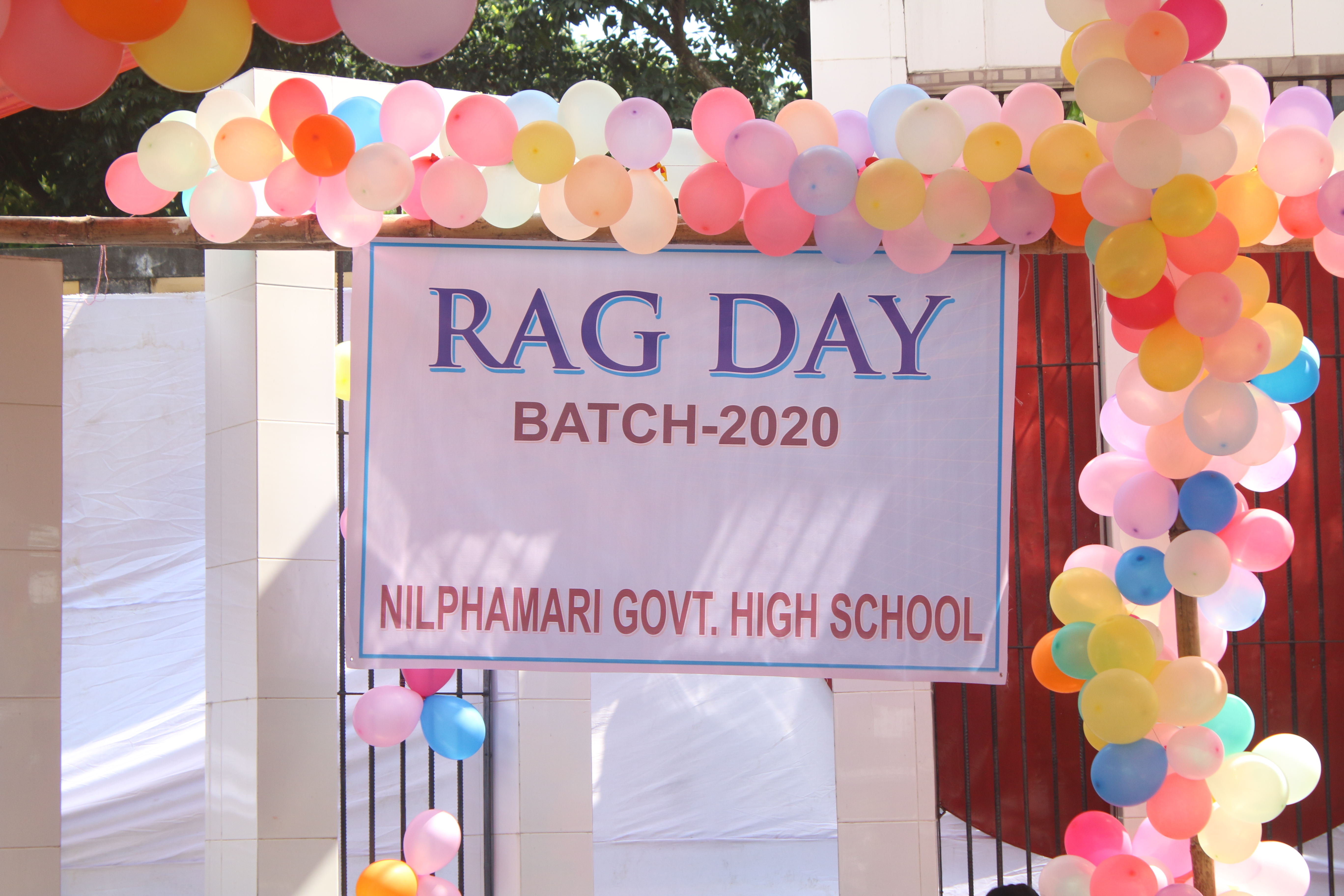 অক্টোবর ৩, ২০১৯ সালে আমাদের র্যাগ ডে পালন হয়। আমরা এসএসসি ২০২০ ব্যাচ ছিলাম। আমরা বিদ্যালয় এর প্রধান শিক্ষকের পারমিশন নিয়ে খুব বড় ভাবে ধুমধাম করে র্যাগ ডে আয়োজন করি । আমাদের বিদ্যালয় এর ইতিহাসে এটি সবথেকে বড় র্যাগ ডে ছিলো। আমরা কয়েকজন বন্ধু এর আয়োজনে ছিলাম।তাই এর আগের দিন থেকেই আমাদের কাজ শুরু হয়ে গিয়েছিল। র্যাগ ডে এর আয়োজন করেছিলাম আমরা বিদ্যালয়ের পিছনের মাঠে। মাঠটি পরিষ্কার করা, সাউন্ড বক্স ইত্যাদি আগের দিনেই সব অ্যারেঞ্জ করে নিয়েছিলাম। পরের দিন সকাল-সকাল আমরা যারা আয়োজন ছিলাম সবার আগে বিদ্যালয়ে চলে যাই। কনফেকশনারিতে আমাদের একটি কেক অর্ডার দেওয়া ছিল, কেকটির উপরে আমাদের বিদ্যালয়ের ছবি দিয়ে ডিজাইন করা ছিল।
