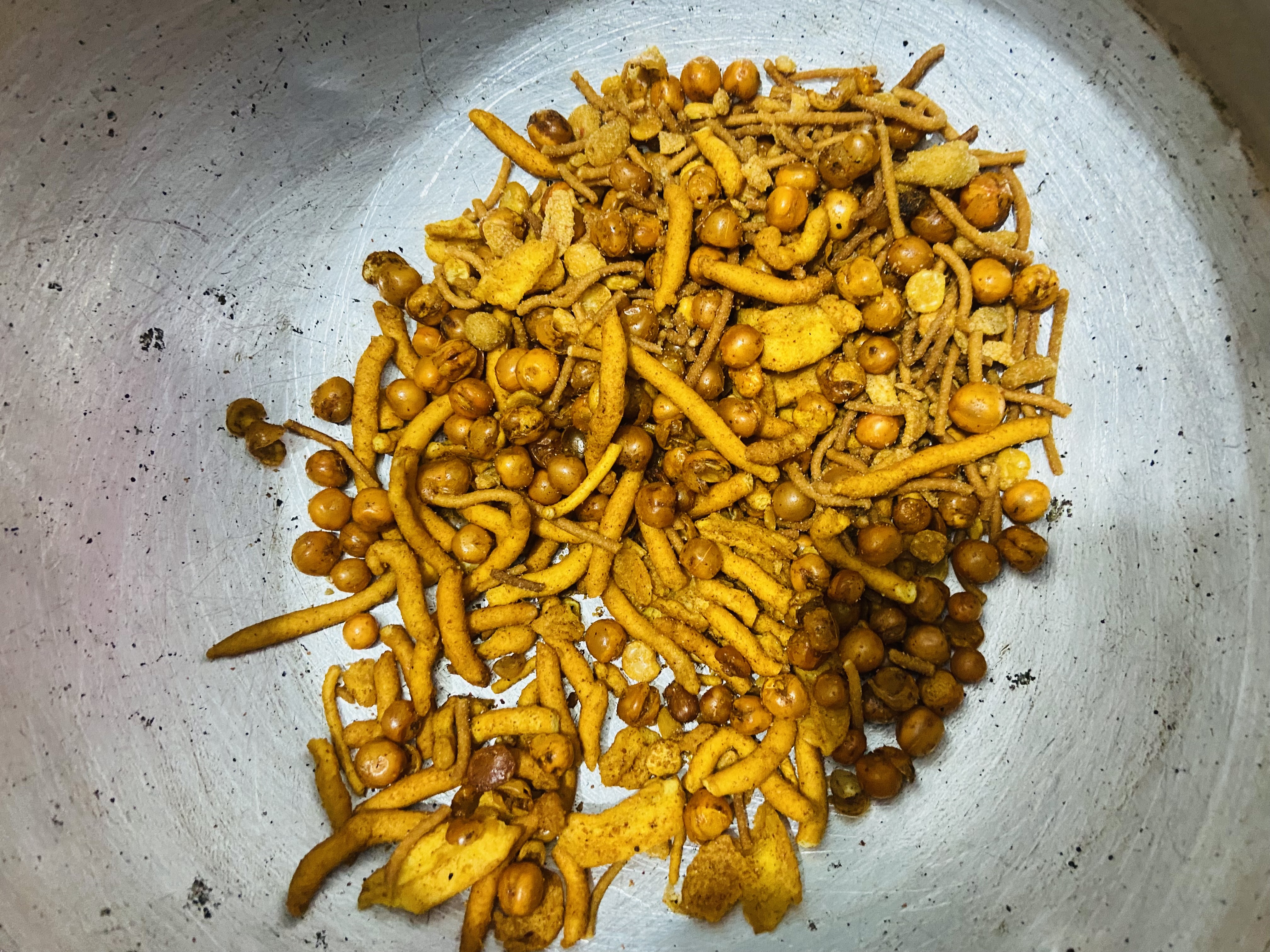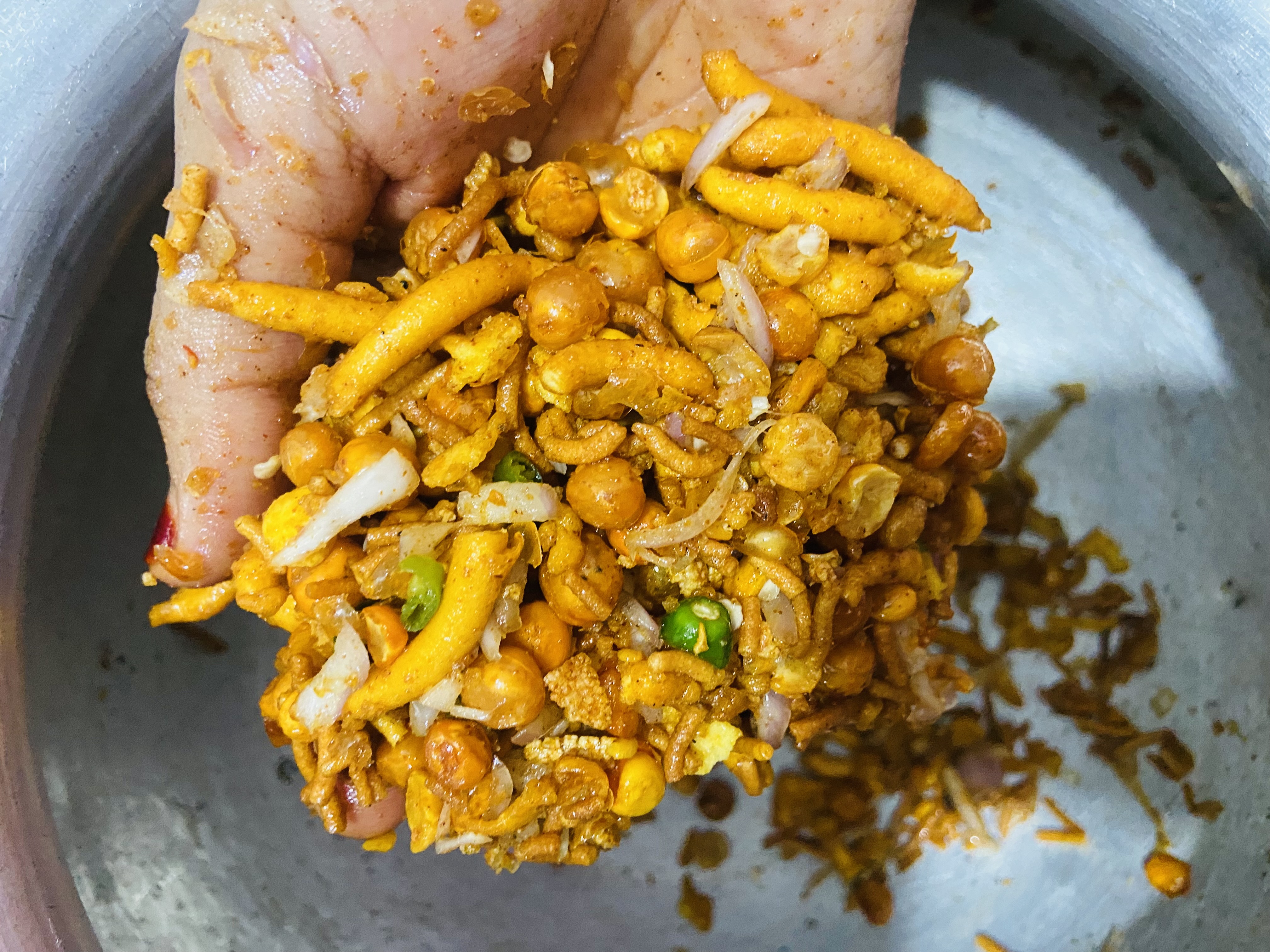 এরপর আমরা আমাদের দু ধরনের চানাচুর এবং মটরভাজা একত্রে মিশিয়ে নিলাম।
