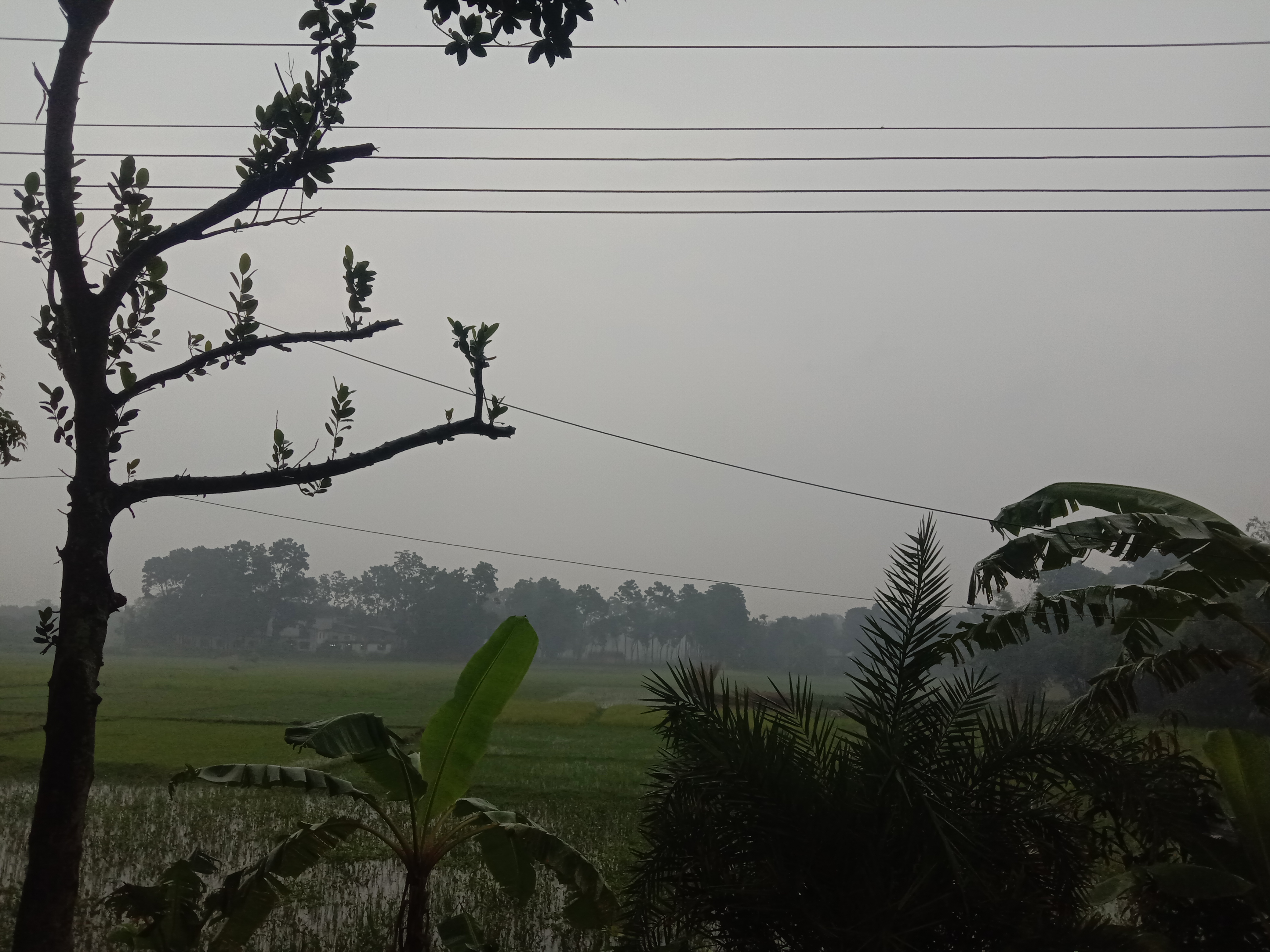 তো মোটামুটি এবারে আর বর্ষাকালের বৃষ্টির আনন্দ টা পুরোপুরি নেওয়া হয় নাই। তবে যে দিন একটু মেঘলা আকাশ ছিল বৃষ্টি হয়েছে সেই মূহুর্তগুলো আমি হারিয়ে যেতে দেয়নি। একেবারে ক্যামেরা বন্দী করে রেখেছি। গতদিন ছিল বৃহস্পতিবার। সকাল থেকেই ছিল প্রচণ্ড রৌদ্দুর একেবারে অসহ্য গরম ছিল। দুপুরের পর শুয়ে আছি ঘুমাই নাই। ওটিটি তে একটা ওয়েব সিরিজ দেখছি। হঠাৎ জানালা দিয়ে বাইরে নজর গেল।দেখি মেঘ লাগছে রোদ কেটে গেছে। এইবার এমন অনেক মূহুর্ত এসেছে কিন্তু বৃষ্টি হয়নি। কিছুক্ষণ পর দেখি প্রচন্ড মেঘ লেগে গেছে। একেবারে সারা আকাশ কালো। জানালা দিয়ে উকি মেরে পরিবেশটা দেখছিলাম বেশ দারুণ লাগছিল। ভাবছি আজকেও বৃষ্টি হবে না। কিন্তু যেই বলা সেই মূহুর্তে ঝমঝমিয়ে বৃষ্টি শুরু হয়ে গেল। একটা সময় ছিল দিনের যখন দিনের যেকোনো সময় বৃষ্টি হলেই আমি বৃষ্টিতে ভিজতাম। কিন্তু এখন আর সেটা হয় না। বয়সটা বেড়েছে তাছাড়া পরীক্ষা চলছে বৃষ্টিতে ভিজে ঠান্ডা জ্বর আসলে আবার অন্য বিপদ। তাই বৃষ্টিতে ভেজার সিদ্ধান্ত বাদ।