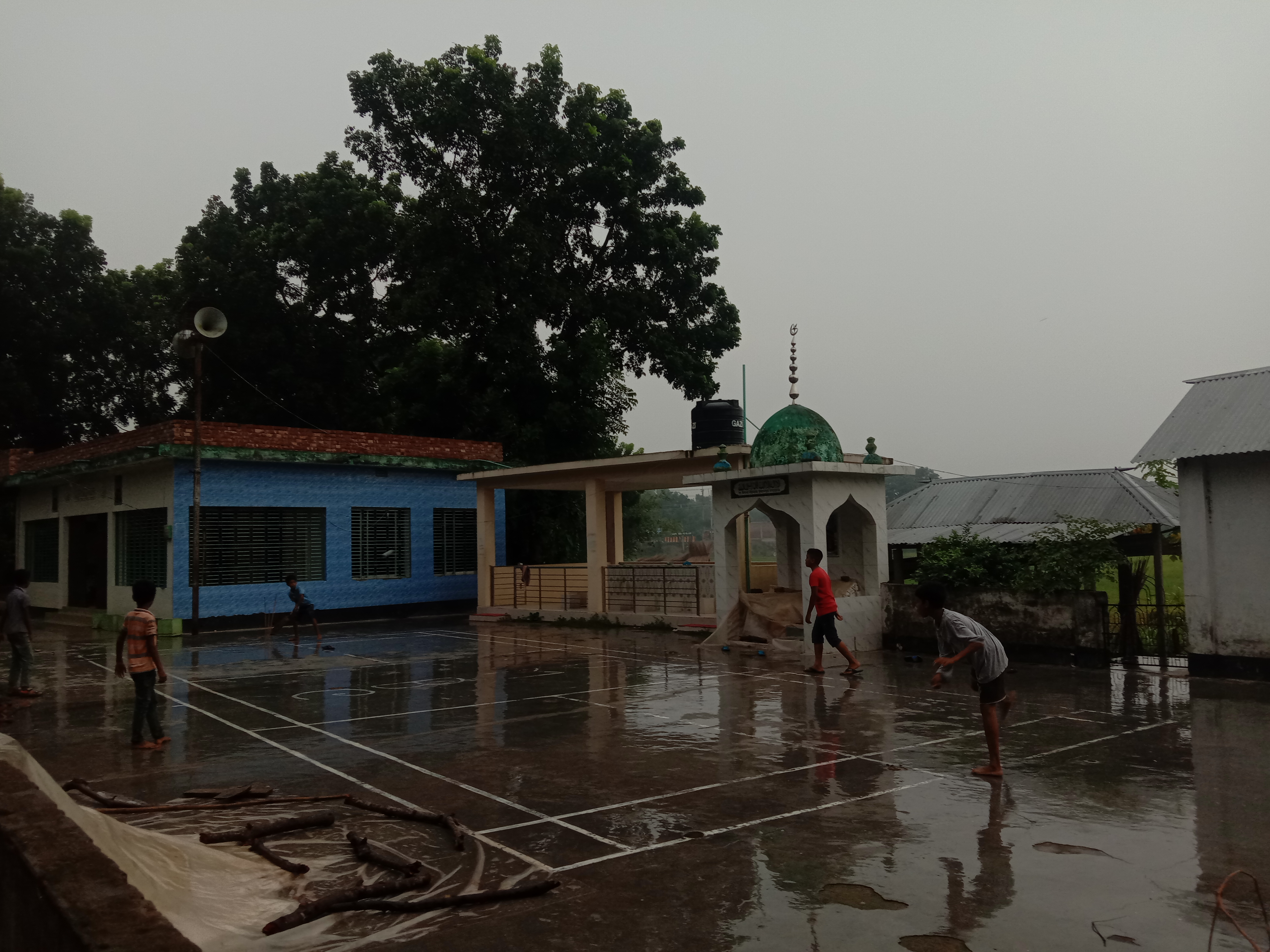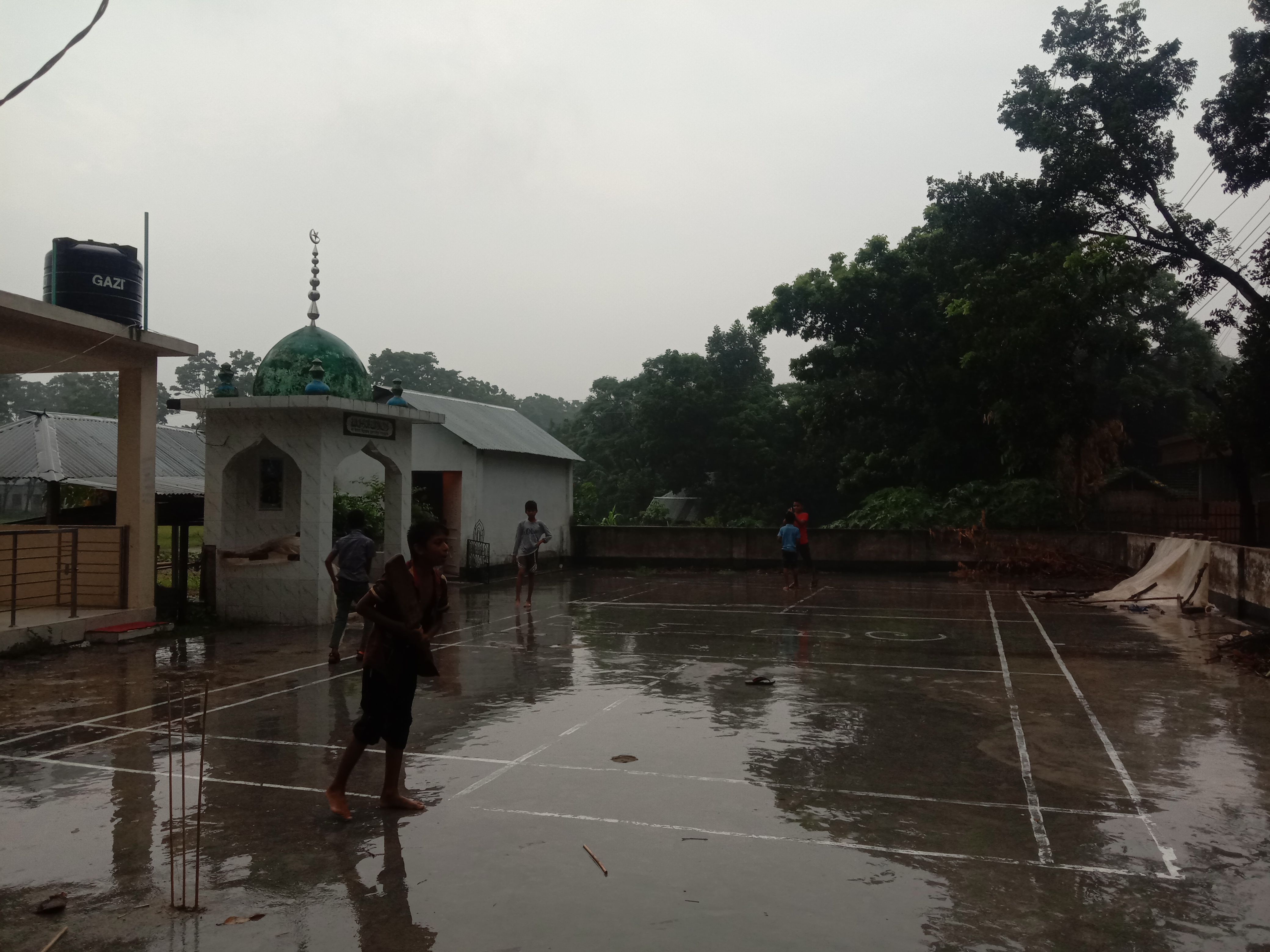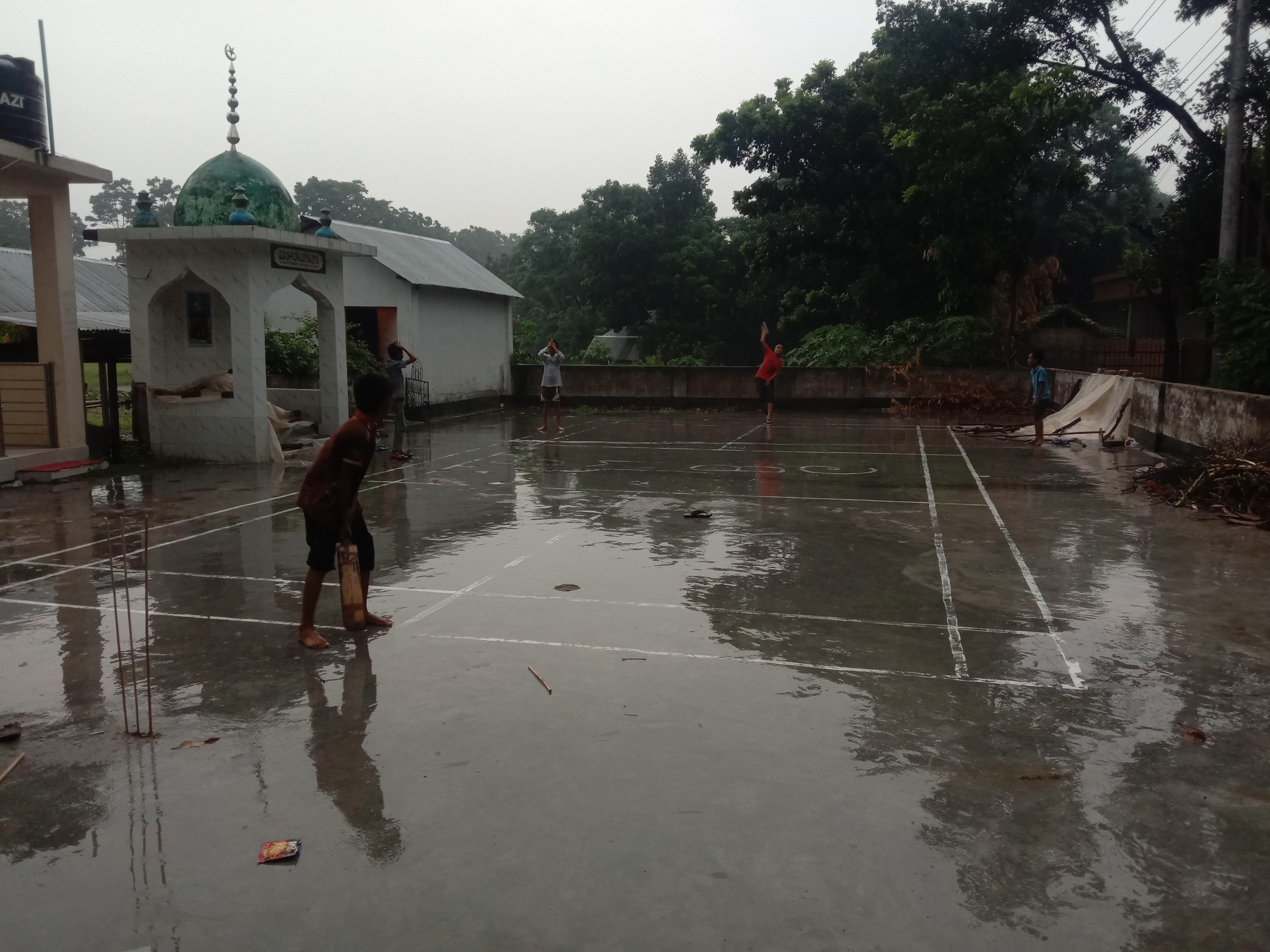 বেশ কিছুক্ষণ বেশ জোড়ে মুষলধারে বৃষ্টি হলো। তারপর কিছুটা আস্তে শুরু হলো। যখন মোটামুটি আস্তে বৃষ্টি শুরু হলো তখন ছাতাটা নিয়ে বের হলাম। ছাতাটা খুজে পেতেও বেগ পেতে হয়েছে। কারণ বৃষ্টি নেই ছাতার খোজও জানা নেই। কিছুক্ষণ খোজাখুজির পর দেখি কলেজ ব্যাগে রয়েছে ছাতাটা। বের করে বাইরের উদ্দেশ্যে বের হলাম। তখন বেশ জোড়ে বৃষ্টি হচ্ছে। বৃষ্টির তান্ডবে প্যান্টের নিচের অংশ ভিজে যাচ্ছিল। বাধ্য হয়ে কিছুটা উপরে তুললাম প্যান্ট টা। কিছুদূর যেতেই দেখি বৃষ্টিতে বাচ্চারা খেলা করছে। বৃষ্টিতে সাধারণত ফুটবল খেলা করা হয়। এইতো বছর তিনেক আগেও বৃষ্টি হলে ফুটবল নিয়ে মাঠে ছুটতাম কিন্তু এখন আর হয় না। তবে বাচ্চারা এই ধারার পরিবর্তন এনেছে। দেখি ওরা বৃষ্টিতে ক্রিকেট খেলছে। অবাক হলেন না আমিও হয়েছিলাম।।।