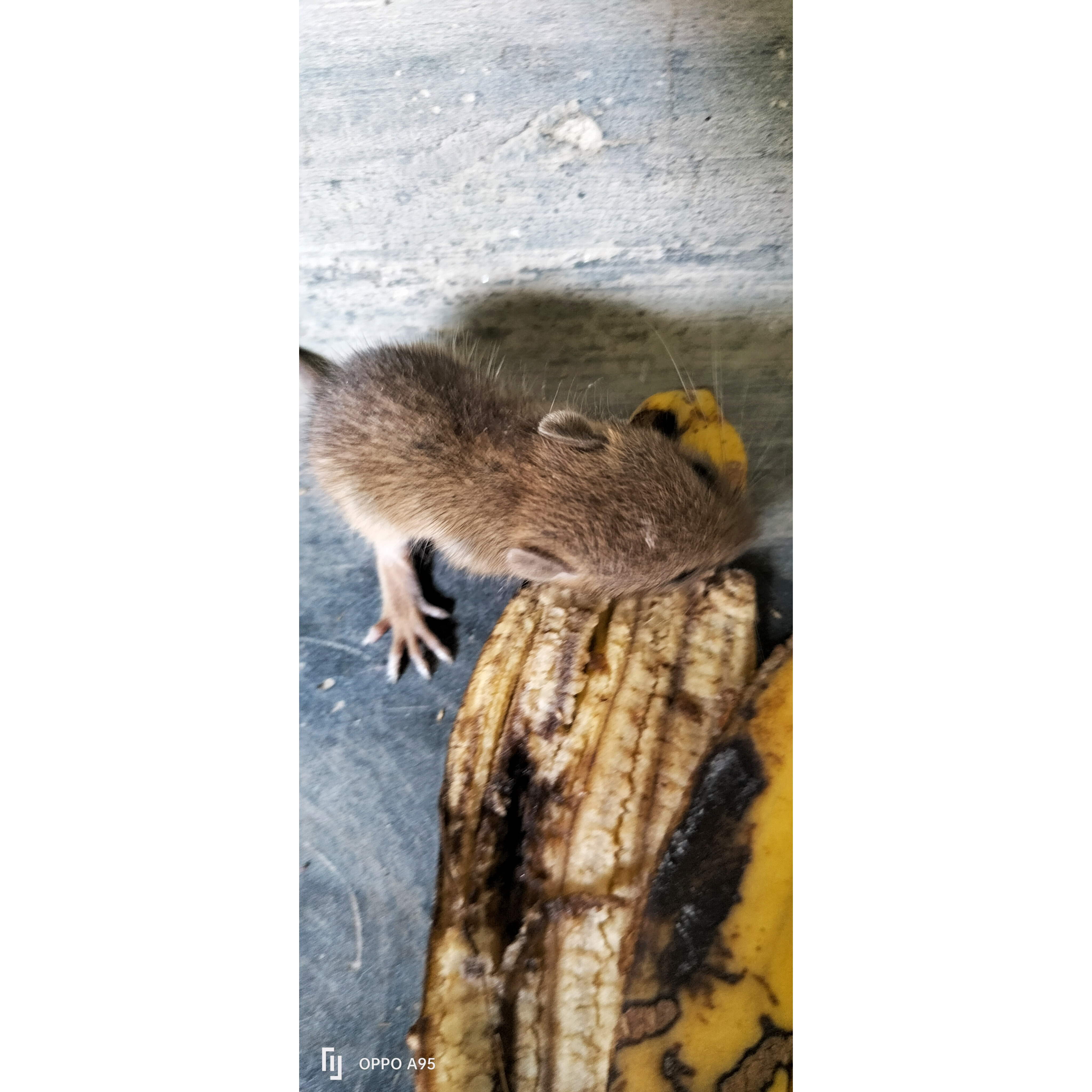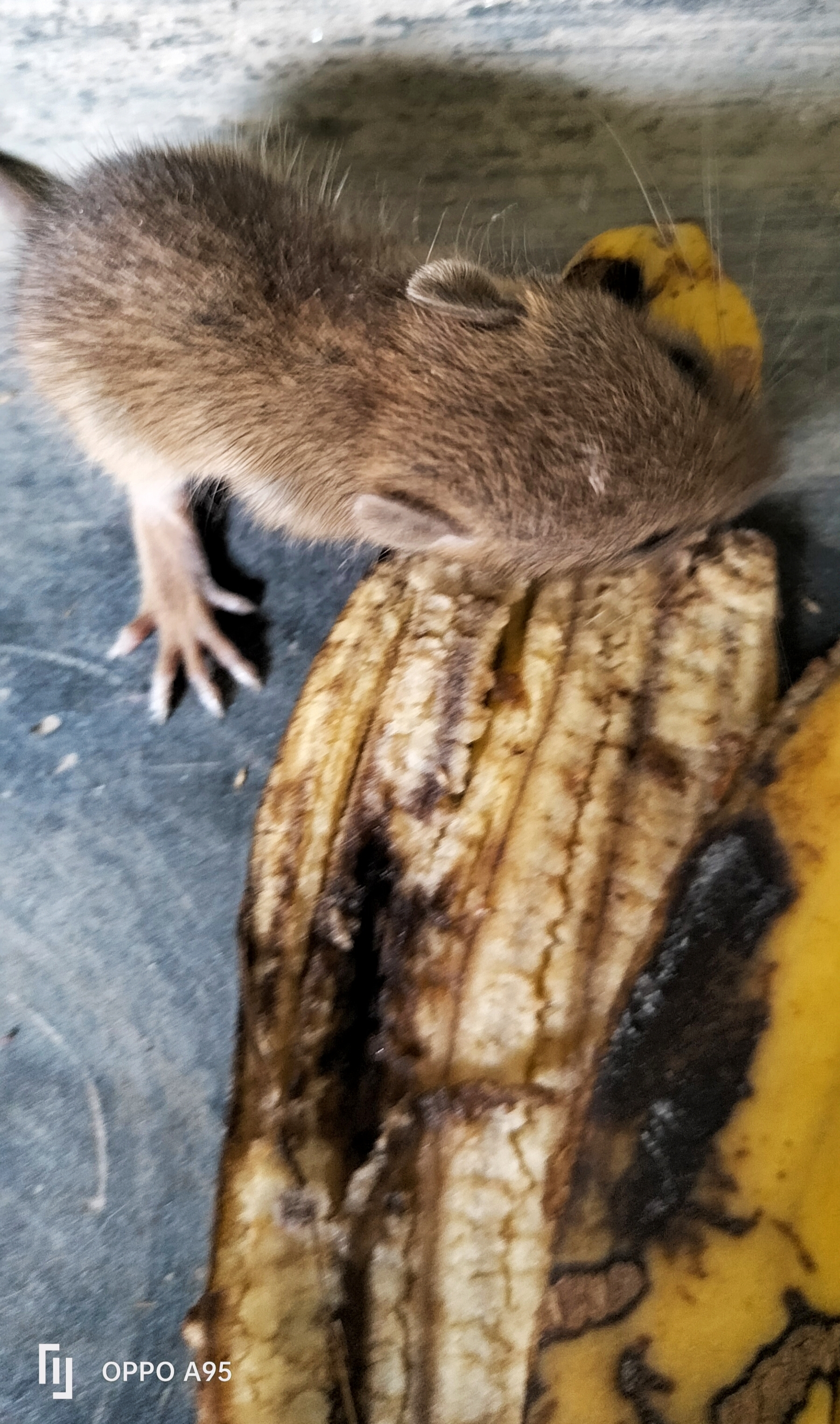 এরপর হঠাৎ একদিন একলাম ছোট প্রজাতির ইঁদুর দেখতে পাই। ইঁদুরটি বারান্দায় কলার খোসা চাটছিলো। ভীষণ দেখতে ভালো লাগছিলো তাই ফটোগ্রাফি করে নিয়েছিলাম কয়েকটি।কাউকে মারতে দেই নি।